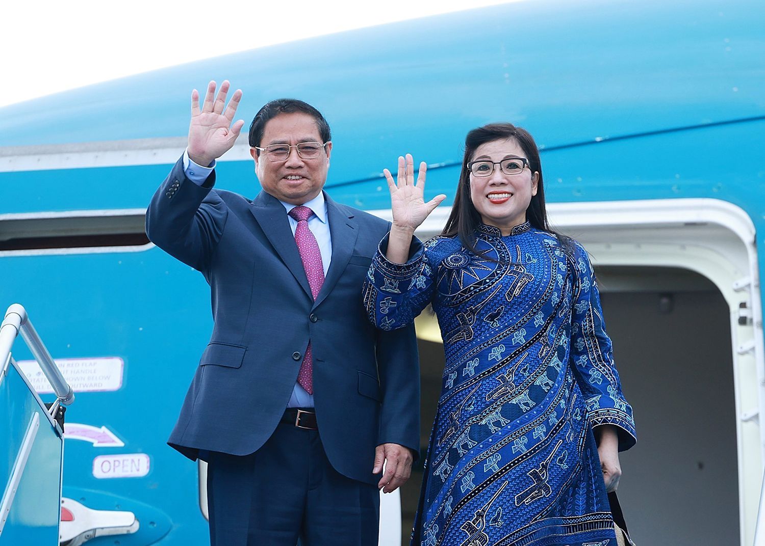El primer ministro de Vietnam, Pham Minh Chinh, y su esposa parten de Hanói en la mañana del 27 de octubre para una gira que incluye visitas oficiales a los Emiratos Árabes Unidos y Catar, su participación en la octava Conferencia sobre la Iniciativa de Inversión Futura y una visita de trabajo en Arabia Saudí. (Foto: VNA)