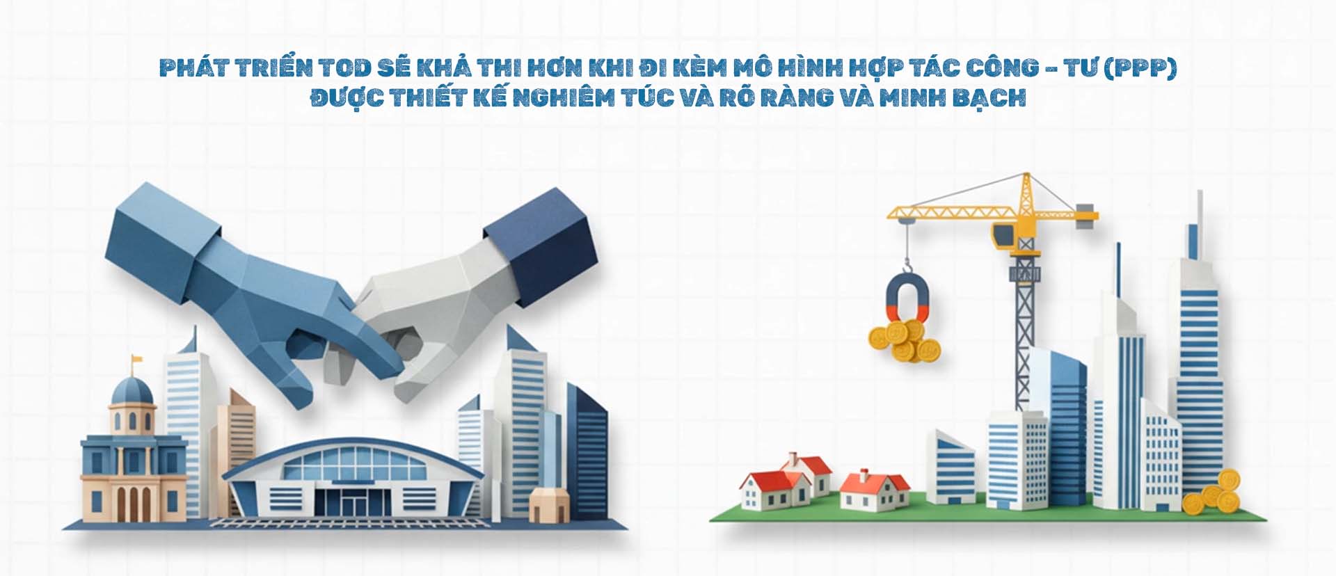 Các chuyên gia nhận định, về tài chính, một mạng lưới metro với nhiều tuyến đòi hỏi nguồn vốn lên đến hàng chục tỷ USD do đó ngân sách nhà nước không thể ôm hết nếu vẫn duy trì tư duy chỉ trông chờ vào đầu tư công. Do đó, phát triển TOD sẽ khả thi hơn khi đi kèm mô hình hợp tác công–tư (PPP) được thiết kế nghiêm túc và rõ ràng và minh bạch. Xây metro càng nhanh nhưng làm TOD không đúng chuẩn, nguy cơ gánh nặng nợ công và chi phí bù lỗ vận hành càng lớn.