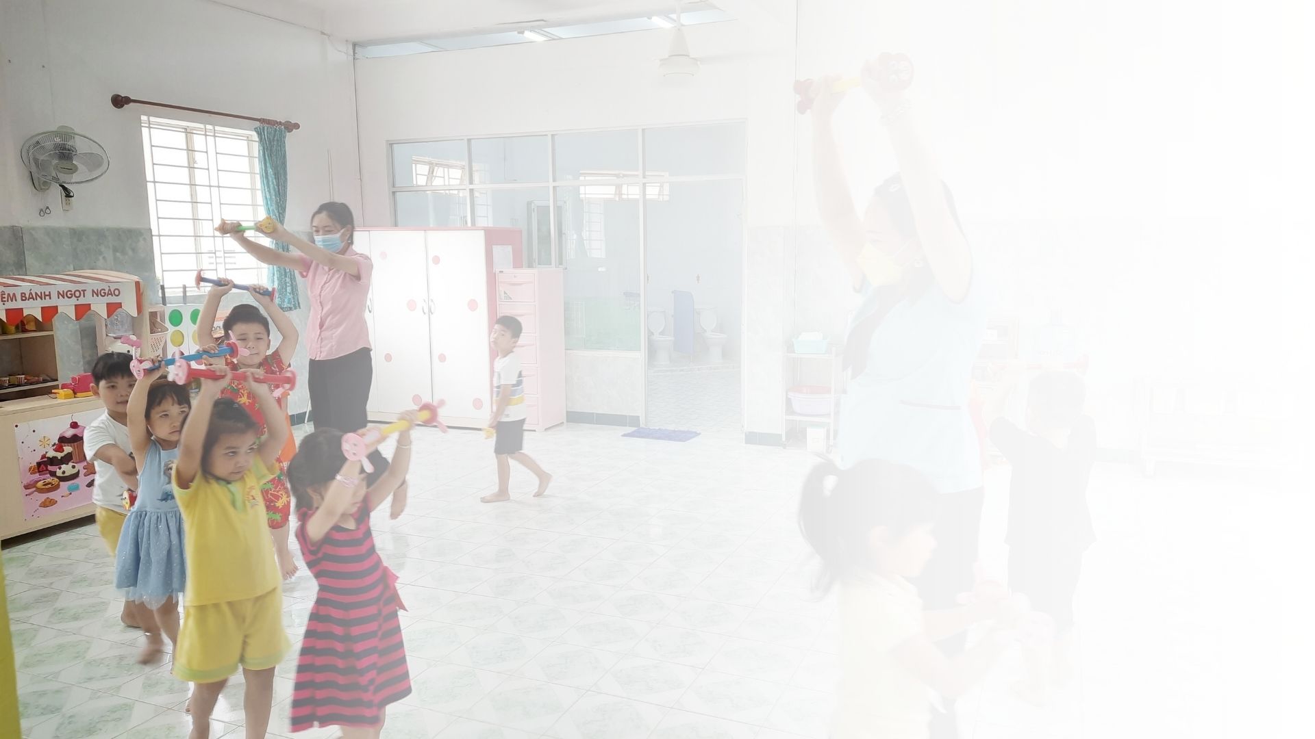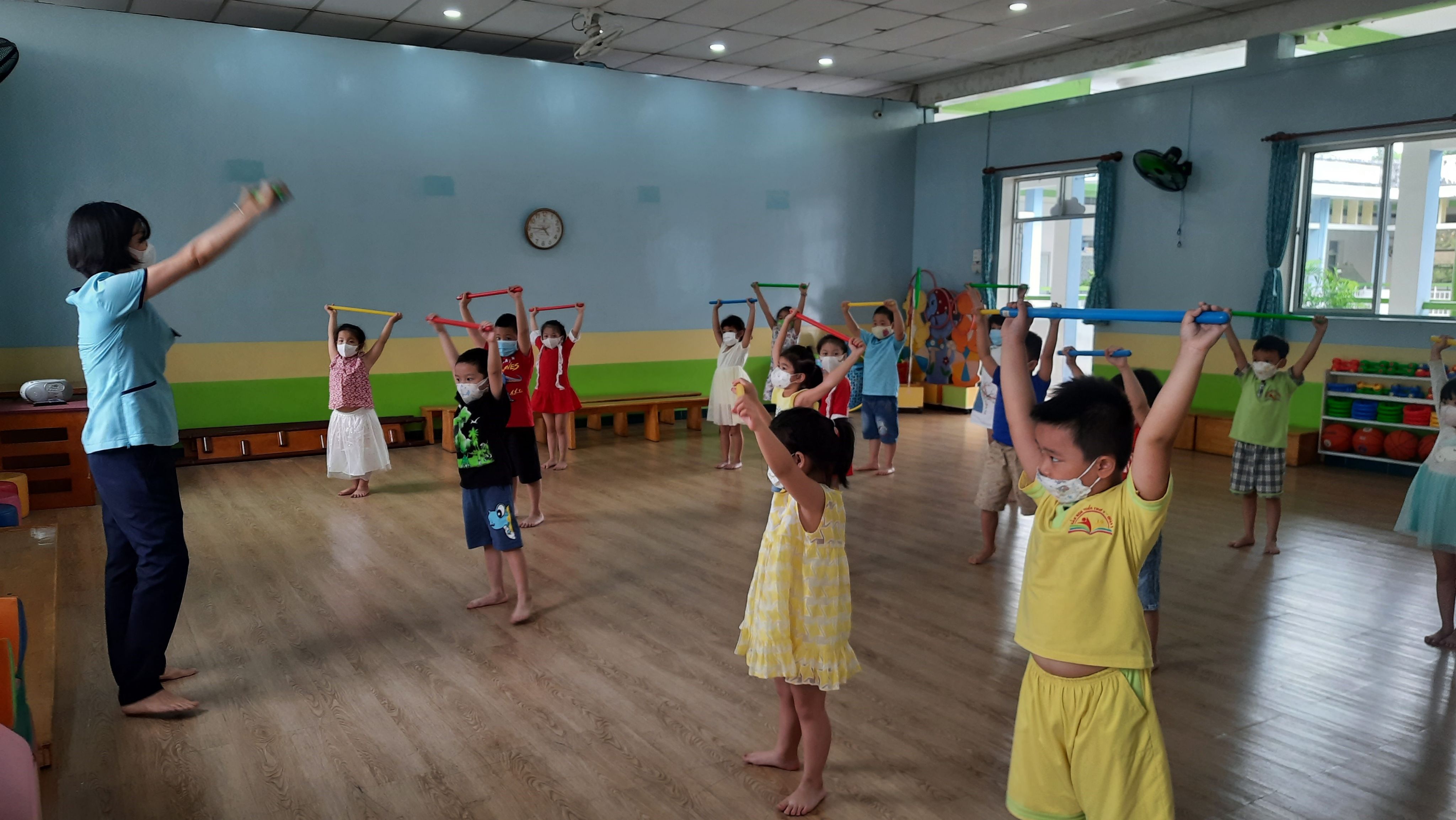 Trường mầm non Tuổi thơ 7, phường Xuân Hòa, Thành phố Hồ Chí Minh trong giờ giáo dục thể chất.