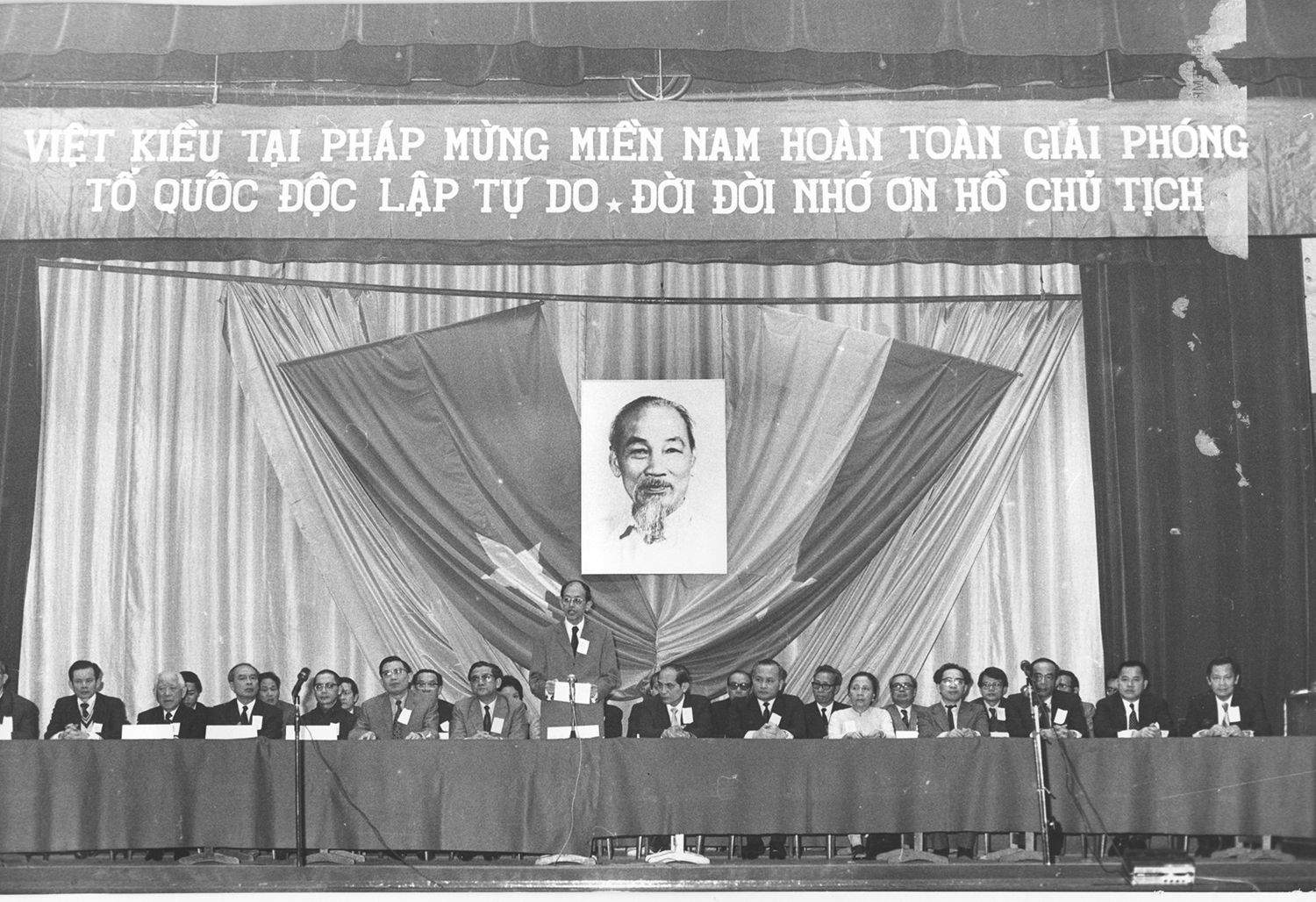 Kiều bào tại Pháp kỷ niệm Ngày sinh Chủ tịch Hồ Chí Minh ở Paris ngày 19/5/1975. (Ảnh: Lê Xuân Tấn)