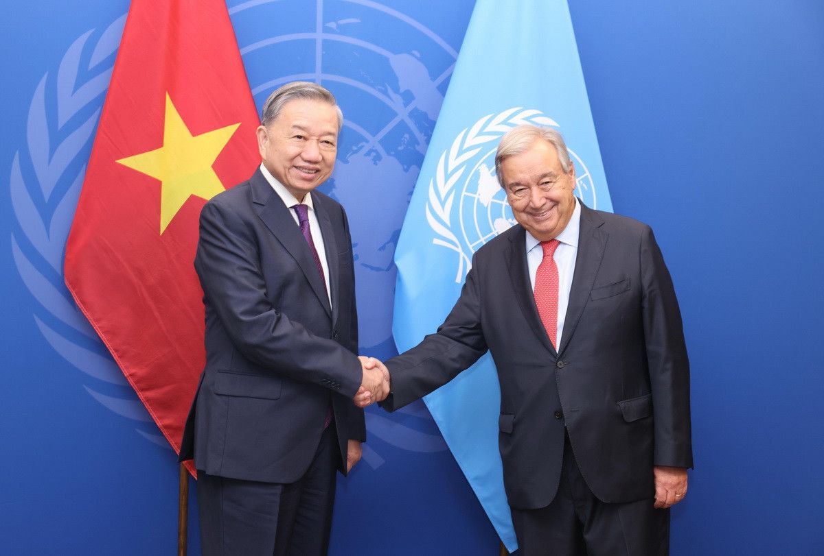 Nhân dịp tham dự Đại hội đồng Liên hợp quốc Khóa 79 ở Hoa Kỳ, chiều 24/9/2024 (giờ địa phương), Tổng Bí thư, Chủ tịch nước Tô Lâm gặp Tổng thư ký Liên hợp quốc Antonio Guterres.