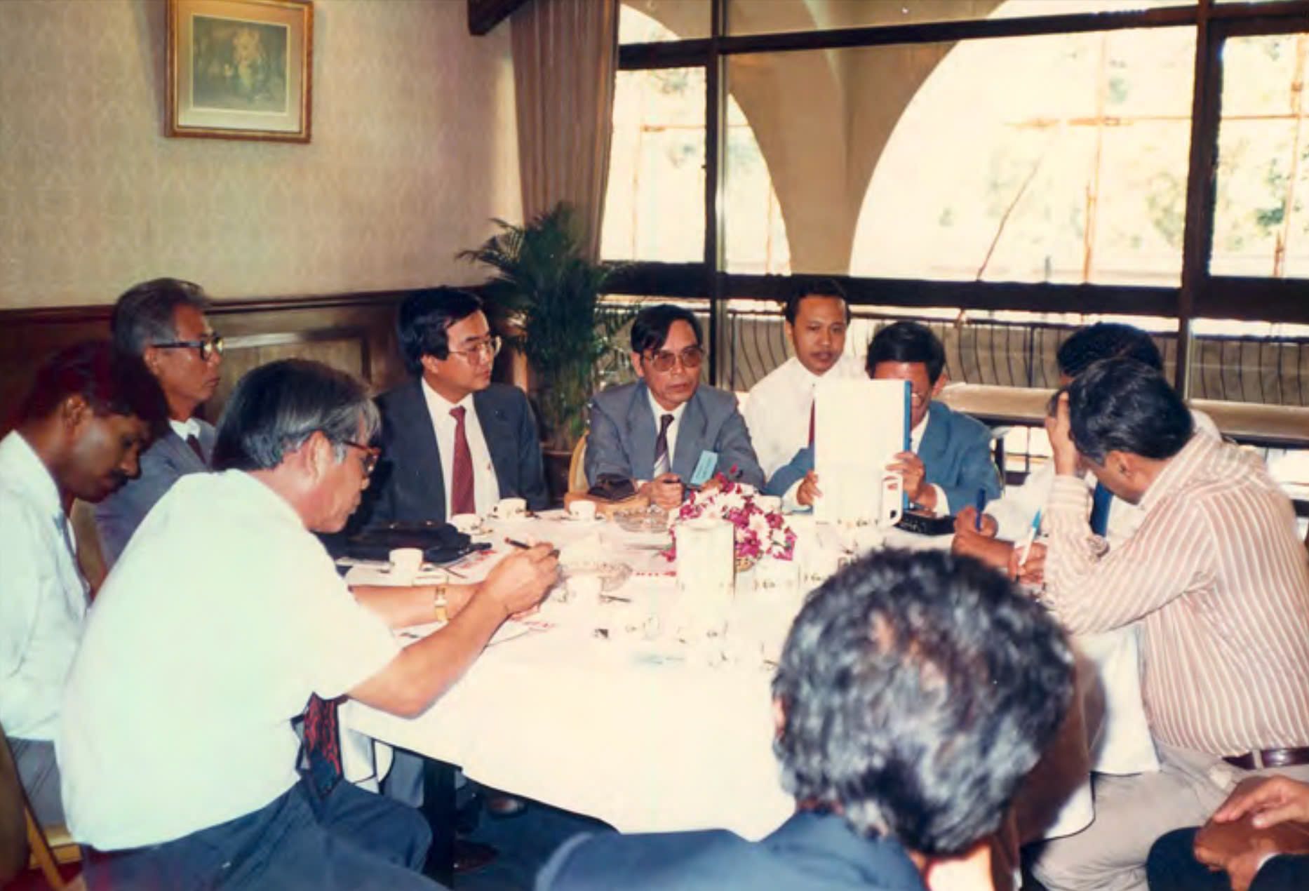 Le docteur Vo Ta Hân accueillant la délégation de M. Phan Van Khai à Singapour en 1988. Photo : Fournie par la famille
