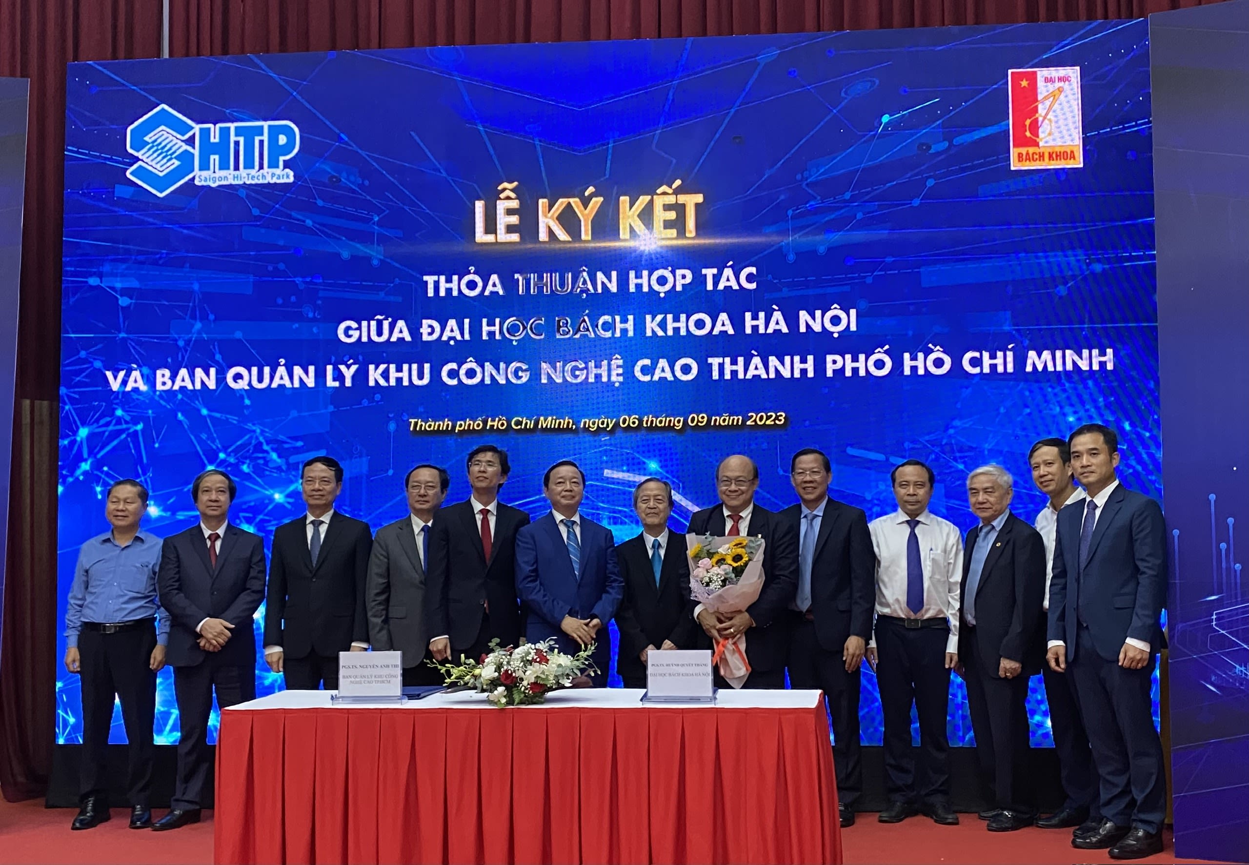 Signature d’un accord de coopération entre l’Université Polytechnique de Hanoï et le Comité de gestion de la zone de haute technologie de Hô Chi Minh-Ville. Photo : Fournie par la famille