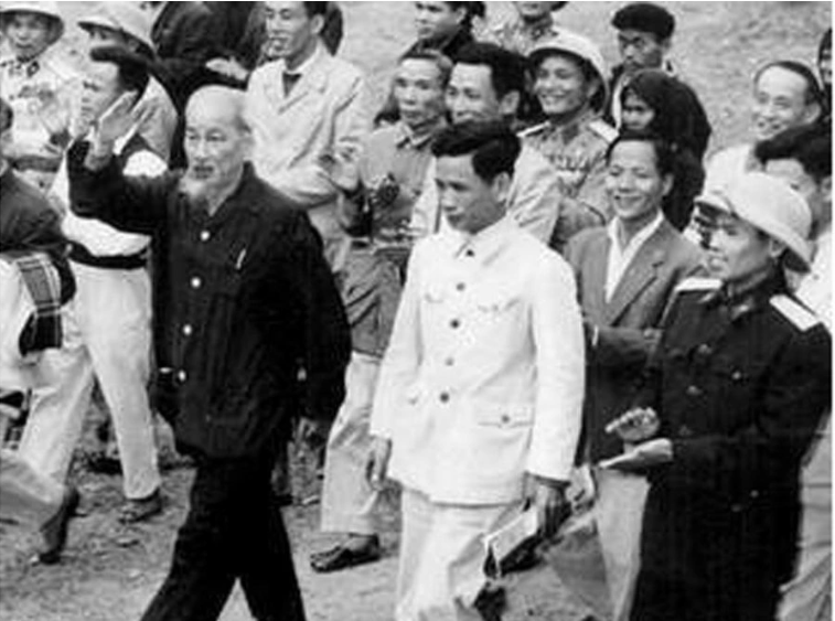 Bí thư Tỉnh ủy Kim Ngọc (áo trắng, đi giữa) đón Bác Hồ về thăm Vĩnh Phúc. (Ảnh tư liệu: TTXVN)