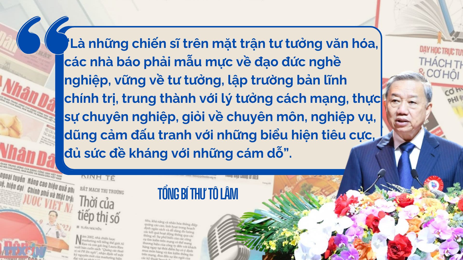 Là những chiến sĩ trên mặt trận tư tưởng văn hóa, các nhà báo phải mẫu mực về đạo đức nghề nghiệp, vững về tư tưởng, lập trường bản lĩnh chính trị, trung thành với lý tưởng cách mạng, thực sự chuyên nghiệp, giỏi về chuyên môn, nghiệp vụ, dũng cảm đấu tranh với những biểu hiện tiêu cực, đủ sức đề kháng với những cám dỗ. Nhà báo phải là nhà hoạt động xã hội uy tín; là người làm công tác tuyên giáo và dân vận; tham gia tích cực hoạt động đối ngoại nhân dân. Trong mọi hoàn cảnh, cần đặt tinh thần trách nhiệm chính trị, trách nhiệm xã hội và đạo đức nghề nghiệp lên trên hết, trước hết; từng tác phẩm báo chí phải thực hiện tốt chức năng cung cấp thông tin chính xác, khách quan, trung thực, nhân văn và hữu ích. Người làm báo thời đại mới phải không ngừng học hỏi, trau dồi kỹ năng, tích hợp công nghệ hiện đại.