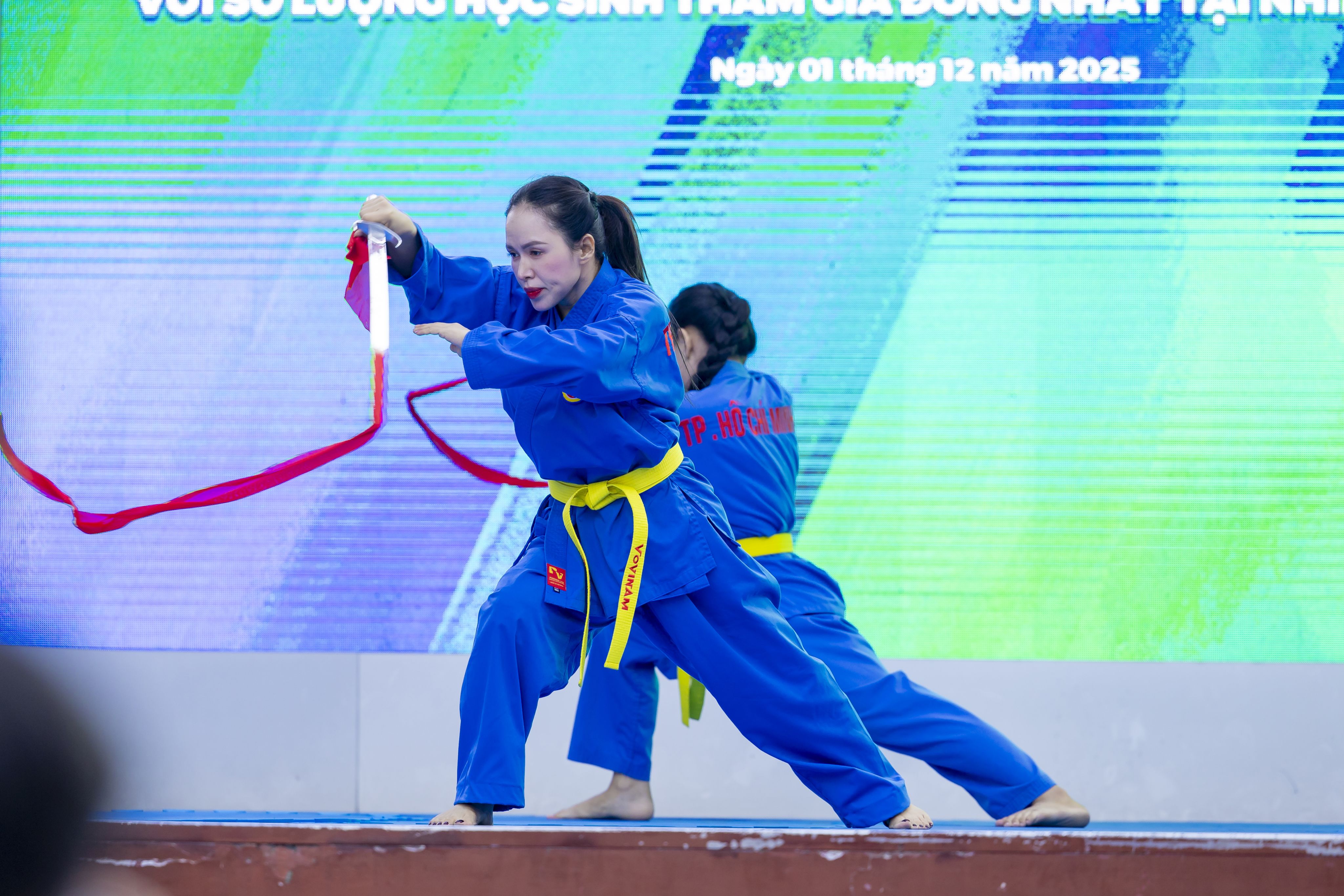 Vào sáng 30/11, 5.000 học sinh từ 15 điểm trường đã có mặt tại Công viên Bờ sông Sài Gòn và cùng 55.000 học sinh khác từ 150 trường trên địa bàn Thành phố Hồ Chí Minh tham gia đồng diễn “Chương trình đồng diễn võ nhạc Vovinam trực tiếp kết hợp trực tuyến tại các điểm trường có số lượng học sinh tham gia đông nhất Việt Nam và thế giới”.