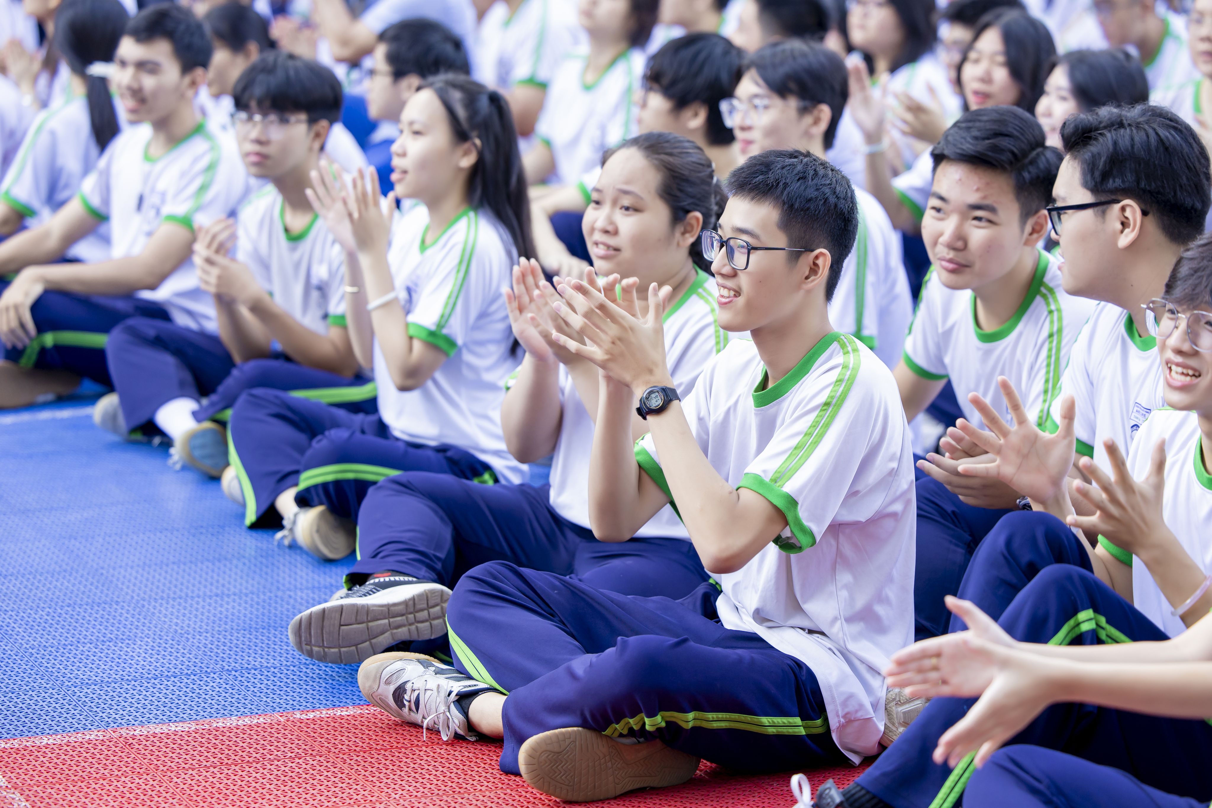 5.000 học sinh từ 15 điểm trường đã có mặt tại Công viên Bờ sông Sài Gòn từ sáng sớm, tập dượt chuẩn bị cho đồng diễn.