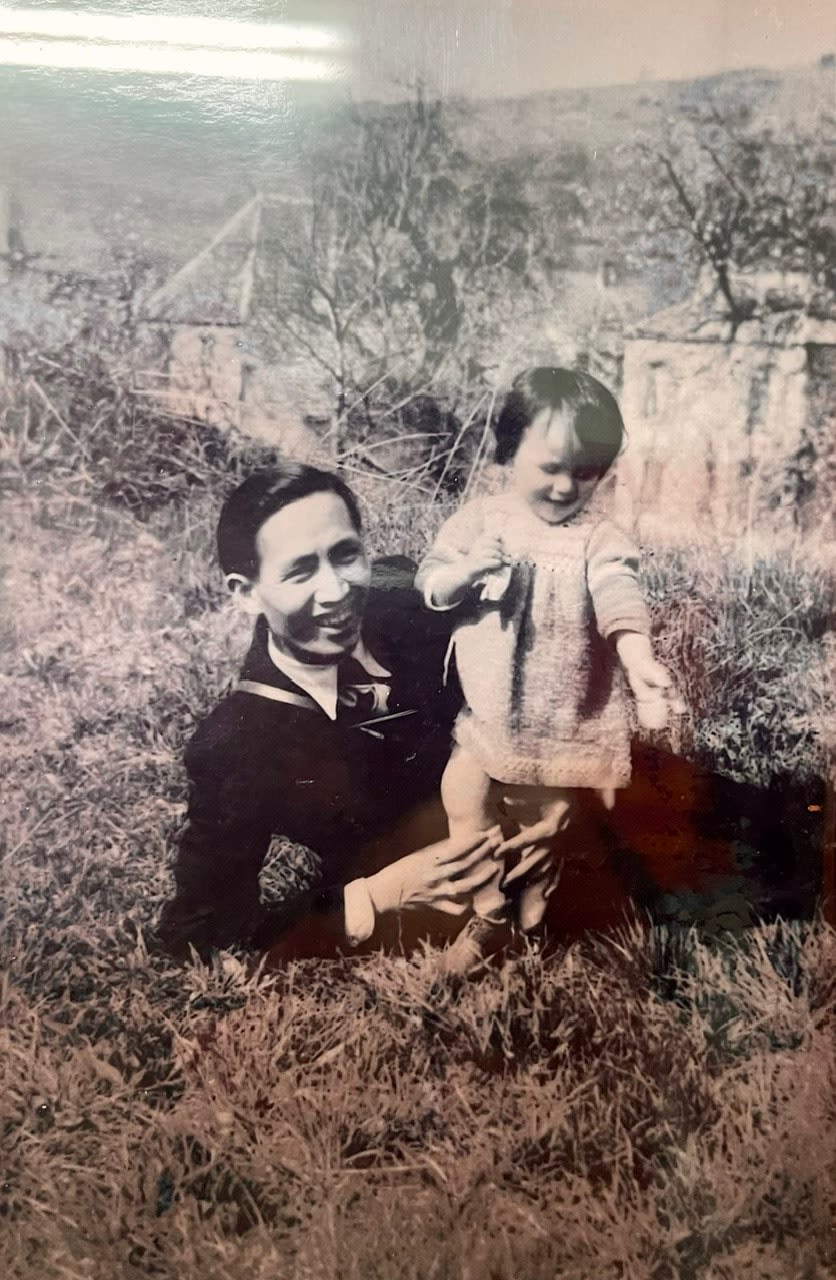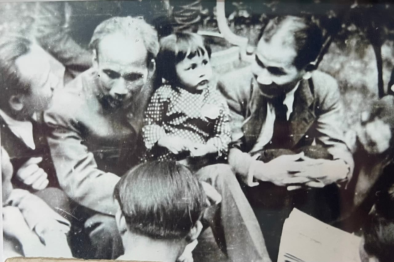 Chủ tịch Hồ Chí Minh và con gái Võ Quí Việt Nga ở Pháp. Ảnh do kỹ sư Võ Quý Huân chụp.