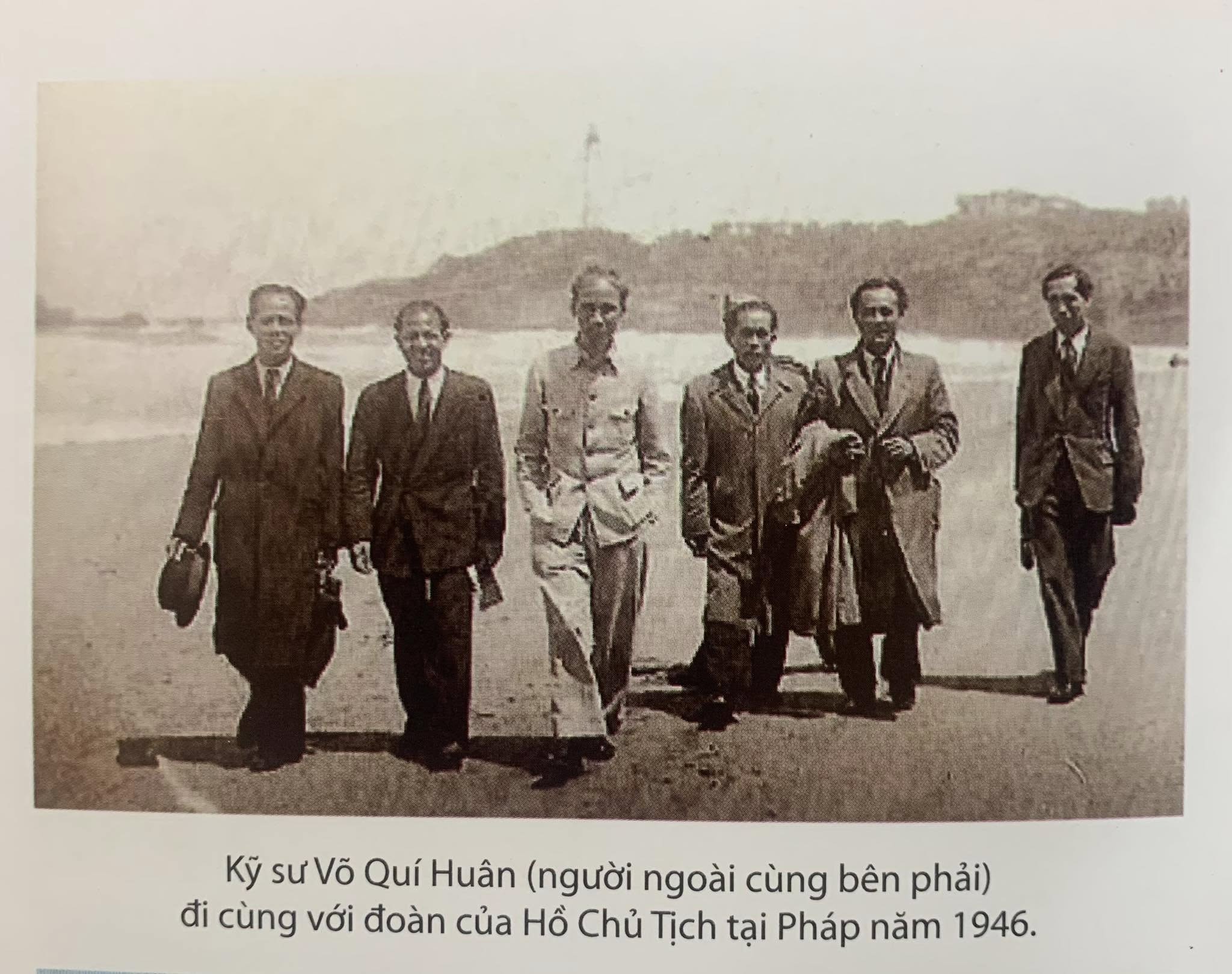 Kỹ sư Võ Quý Huân (ngoài cùng bên phải) đi cùng đoàn của Chủ tịch Hồ Chí Minh tại Pháp năm 1946.