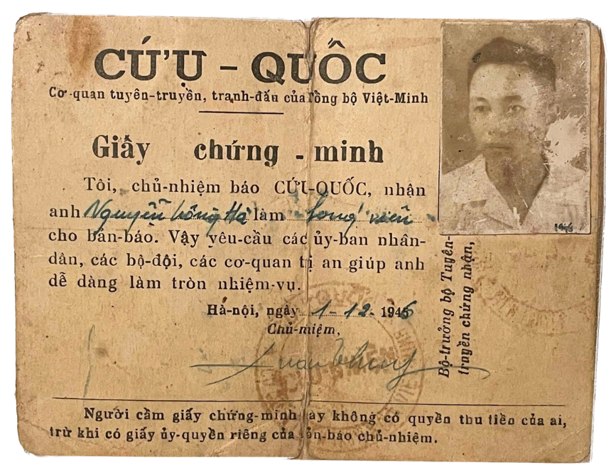 Giấy chứng minh của nhà báo Hồng Hà.