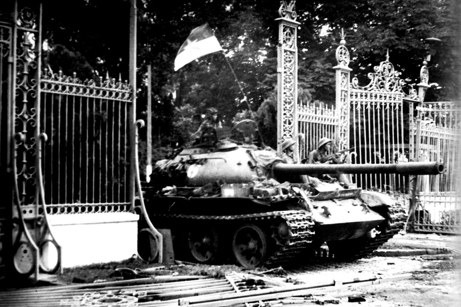 Un char de l’Armée de libération prend d’assaut le palais présidentiel du régime de Saïgon. Photo : VNA.