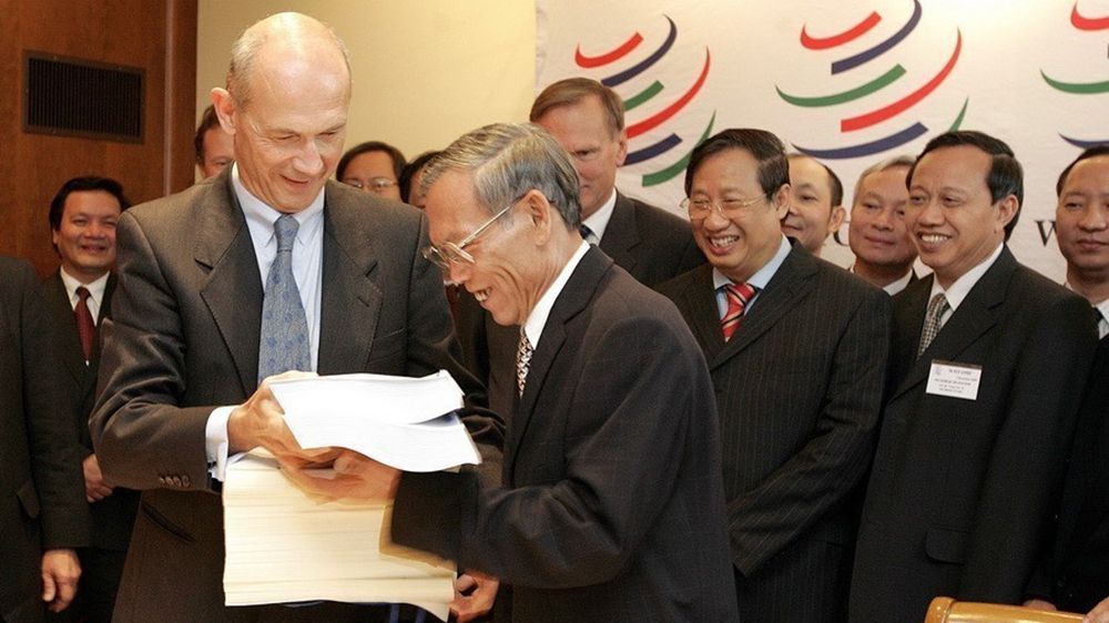 Le 7 novembre 2006, le ministre vietnamien du Commerce Truong Dinh Tuyen et le directeur général de l’Organisation mondiale du commerce (OMC), Pascal Lamy, concluent le protocole d’adhésion du Vietnam à l’OMC. Photo : VNA.