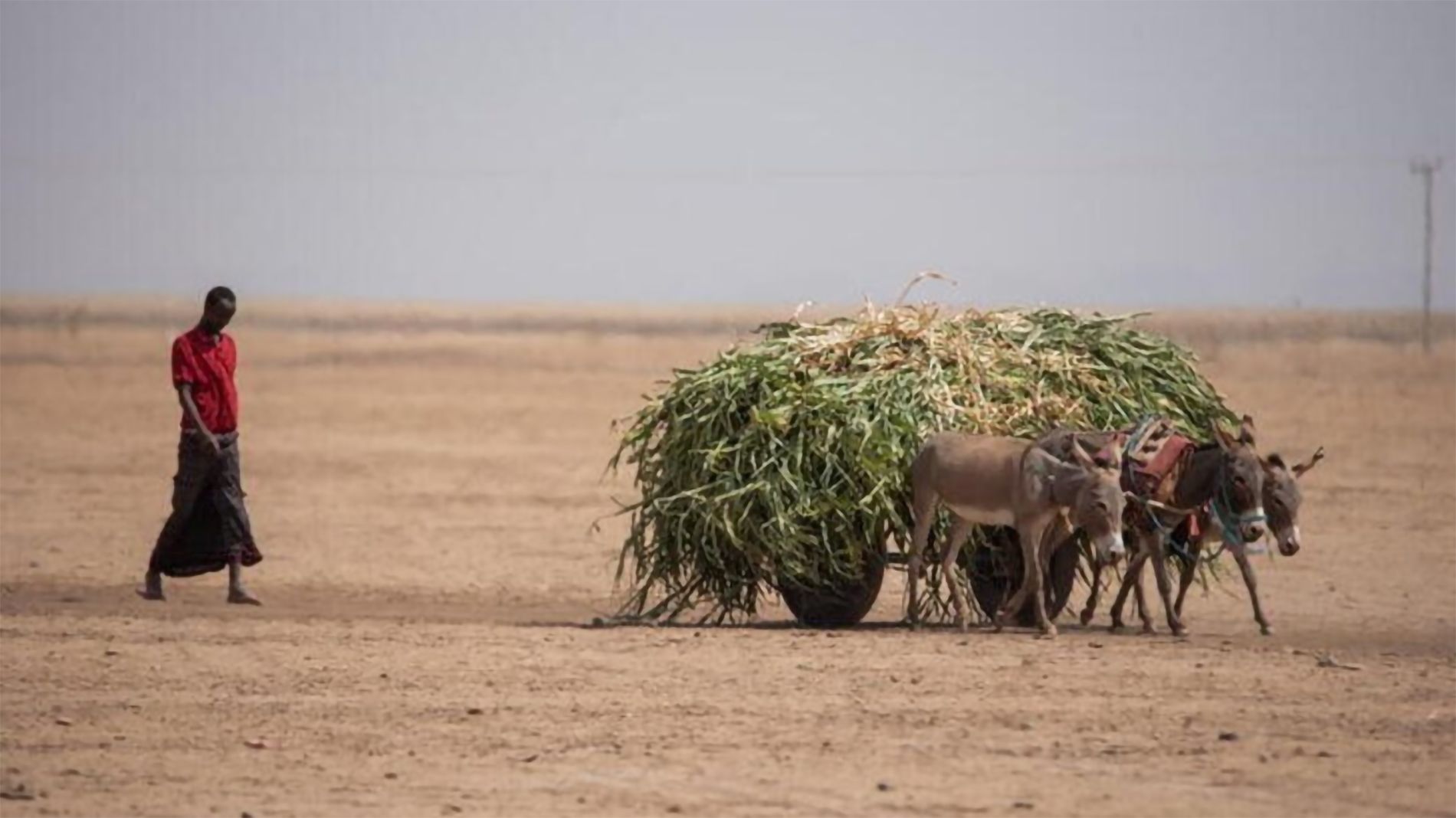 Một người đàn ông sử dụng xe lừa để chở thức ăn chăn nuôi đến các khu vực bị hạn hán ở Higlo Kebele, huyện Adadle, vùng Somali của Ethiopia. (Ảnh: WFP)