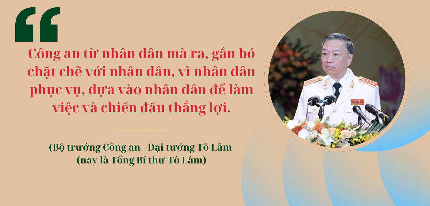 Thực hiện lời căn dặn của Bộ trưởng Công an - Đại tướng Tô Lâm (nay là Tổng Bí thư Tô Lâm) phát biểu tại Lễ kỷ niệm 75 năm Ngày truyền thống lực lượng Công an nhân dân và 15 năm Ngày hội toàn dân bảo vệ an ninh Tổ quốc: "Công an từ nhân dân mà ra, gắn bó chặt chẽ với nhân dân, vì nhân dân phục vụ, dựa vào nhân dân để làm việc và chiến đấu thắng lợi", những năm qua, lực lượng công an đã thể hiện rõ quyết tâm qua các hoạt động đẩy mạnh cải cách hành chính, thực hiện quy chế dân chủ trong công an nhân dân, thực hiện thanh tra, kiểm tra, tiếp dân, giải quyết khiếu nại tố cáo của nhân dân;