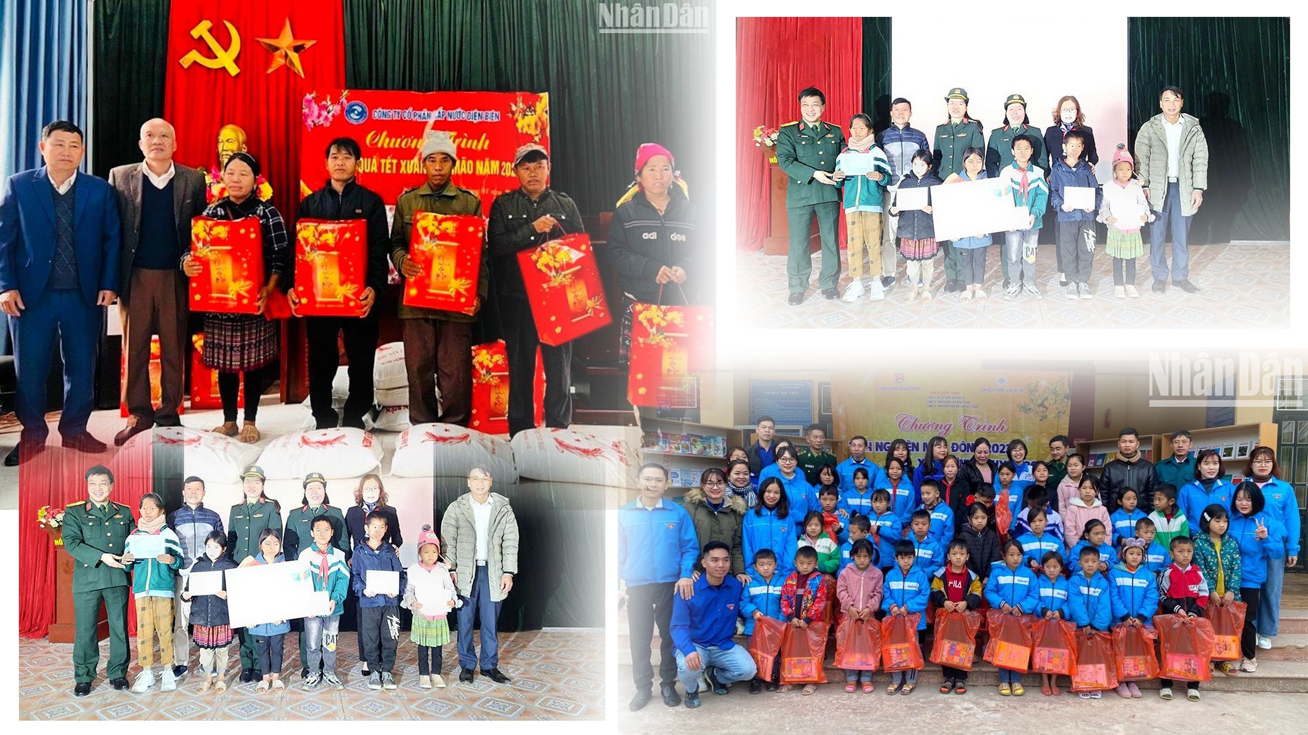 Cùng với đó, đơn vị trao 1.388 suất quà của Chủ tịch nước, trị giá 420 triệu đồng; 33 suất quà của Tỉnh ủy, Ủy ban nhân dân tỉnh, trị giá 40 triệu đồng; hàng nghìn suất quà tổng trị giá hơn 700 triệu đồng của Bộ Quốc phòng; Đảng ủy, Bộ Tư lệnh Quân khu 2; huyện ủy, ủy ban nhân dân các huyện, quà của Bộ Chỉ huy Quân sự tỉnh Điện Biên khoảng 300 triệu đồng…