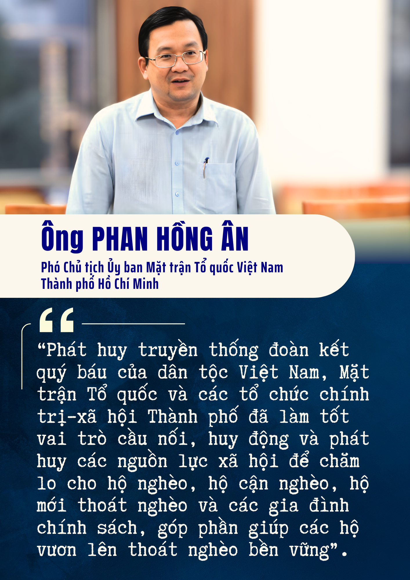 Phong trào “Vì người nghèo - Không để ai bị bỏ lại phía sau” nhận được sự hưởng ứng rộng rãi, với nhiều đổi mới trong cách thức vận động và giúp đỡ các hộ nghèo vươn lên trong cuộc sống. Trong những năm qua, Quỹ Vì người nghèo Thành phố Hồ Chí Minh đã tổ chức nhiều hoạt động chăm lo thiết thực như: