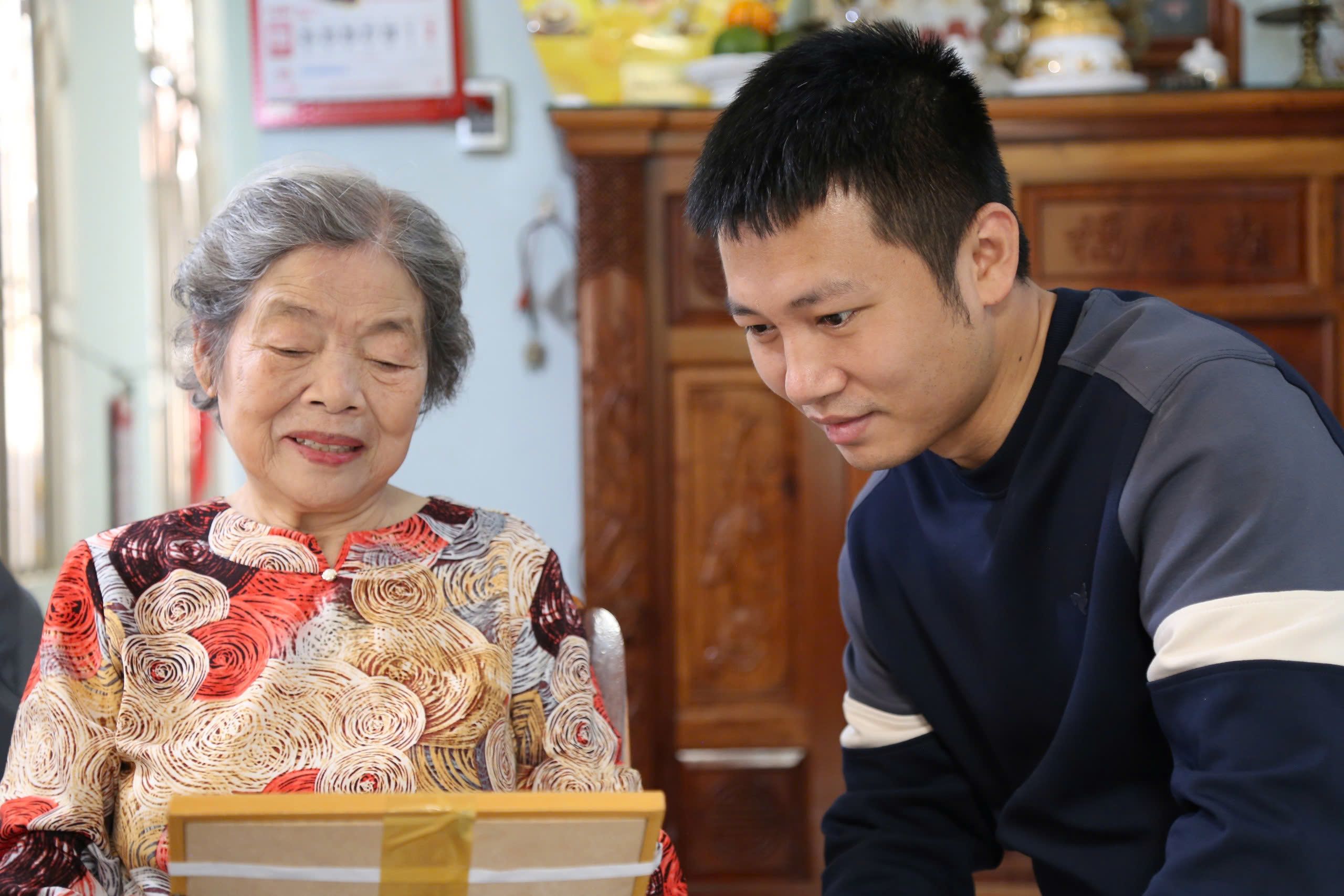 Bà Nguyễn Thị Ngọc Lan bồi hồi, xúc động khi nhớ về những ngày thức thâu đêm may cờ Tổ quốc phục vụ kháng chiến.