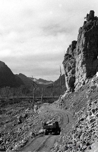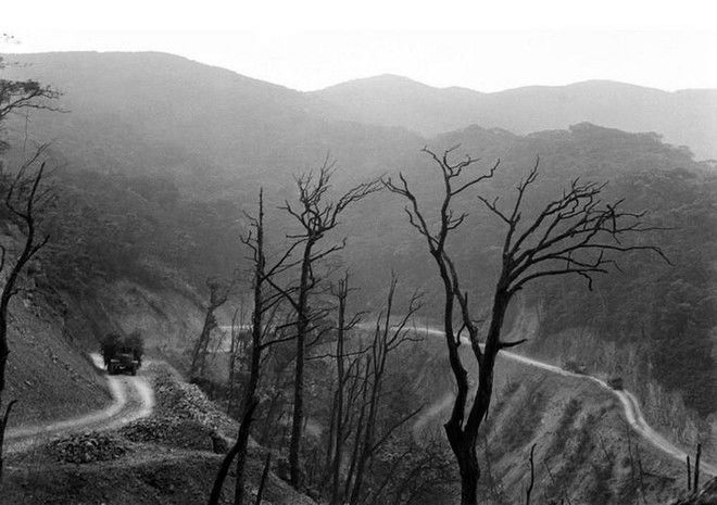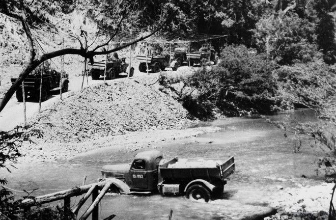 Địch đánh phá ác liệt ngày đêm nhưng tuyến đường 20 Quyết Thắng trên địa bàn tỉnh Quảng Bình vẫn được đảm bảo thông suốt cho xe đi lại (1969). (Ảnh: Văn Sắc/ TTXVN)