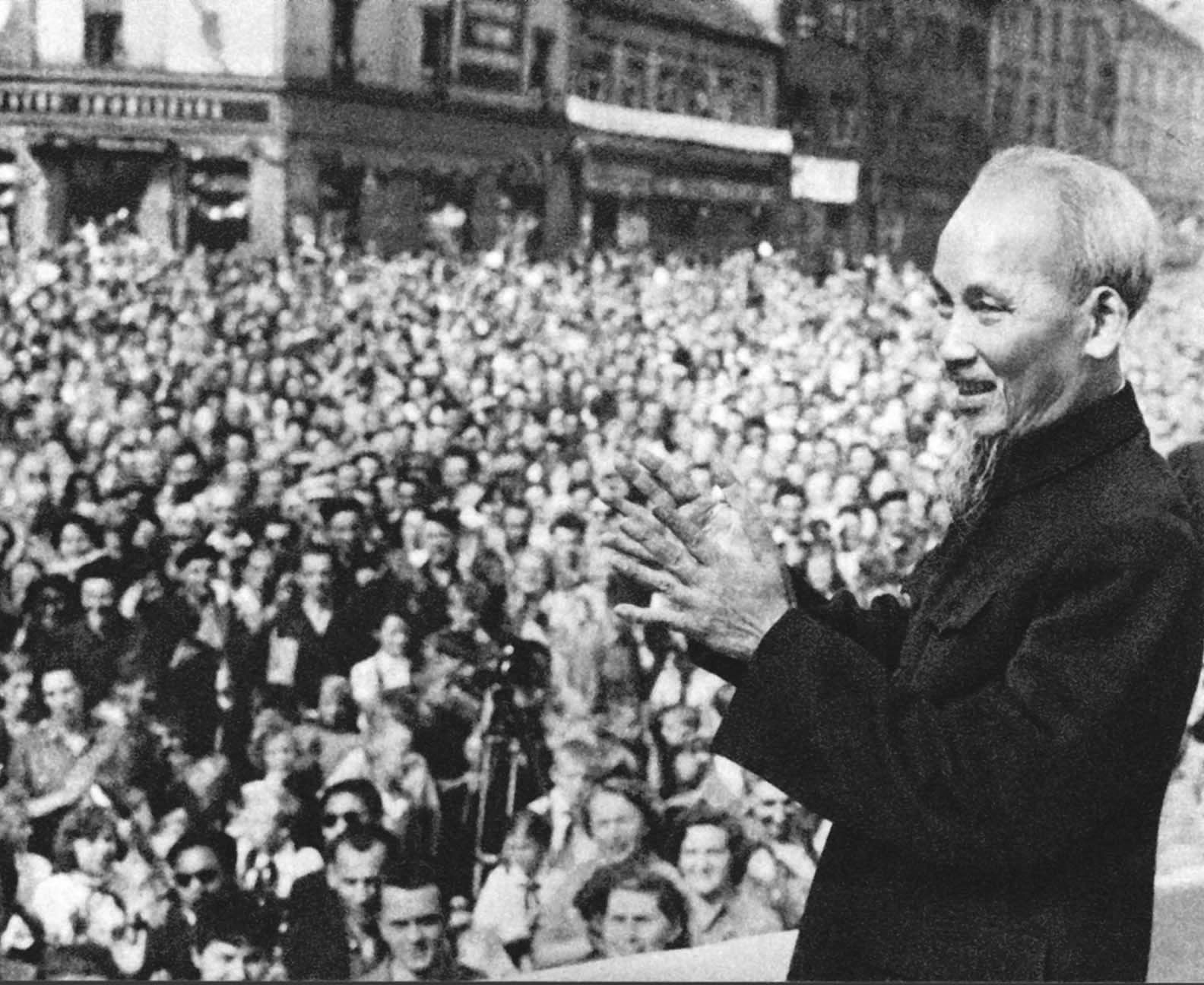 Chủ tịch Hồ Chí Minh nói chuyện với nhân dân Tiệp Khắc vào tháng 7/1957. Ảnh: TTXVN
