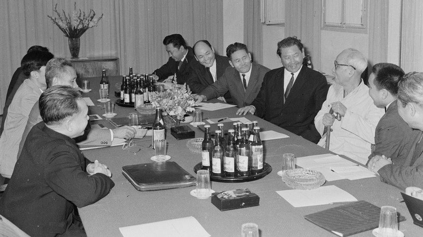 Đoàn đại biểu Đảng và Chính phủ Mông Cổ thăm Chủ tịch Hồ Chí Minh trong chuyến thăm hữu nghị Việt Nam từ 25-29/12/1967. Ảnh: TTXVN