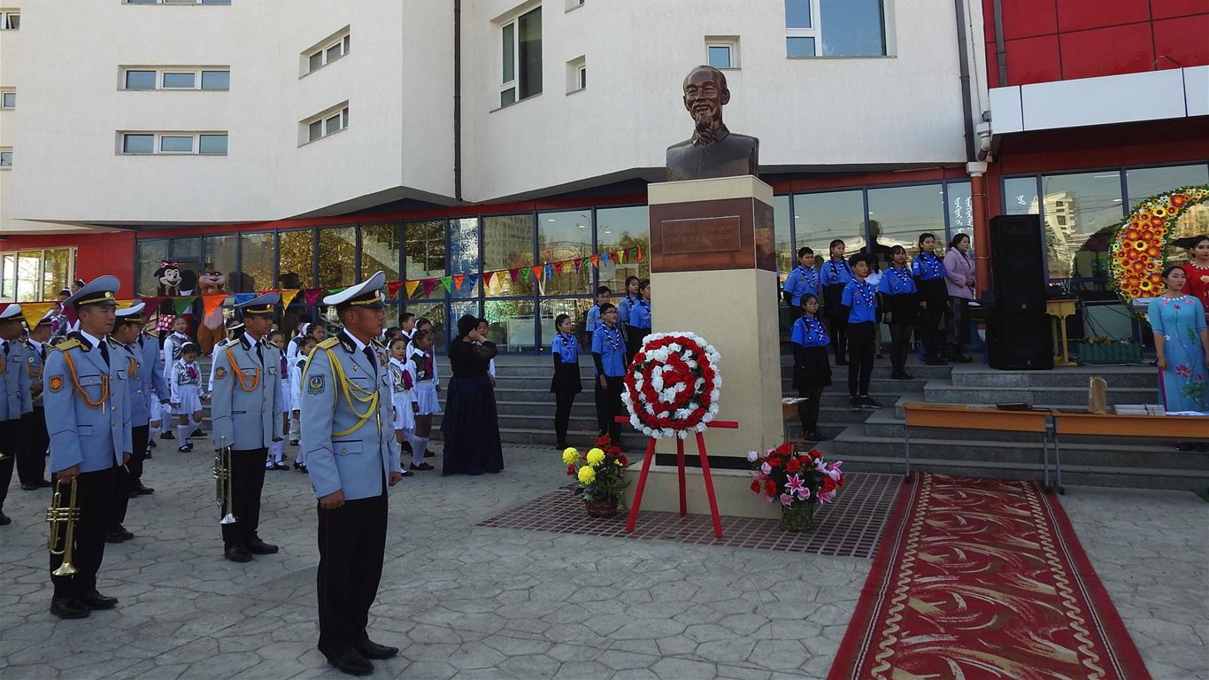 Ngày 4/10/2019, Trường thực nghiệm số 14 mang tên Hồ Chí Minh ở thủ đô Ulan Bator (Mông Cổ) tổ chức kỷ niệm 70 năm ngày thành lập. Ảnh: baotanghochiminh.vn