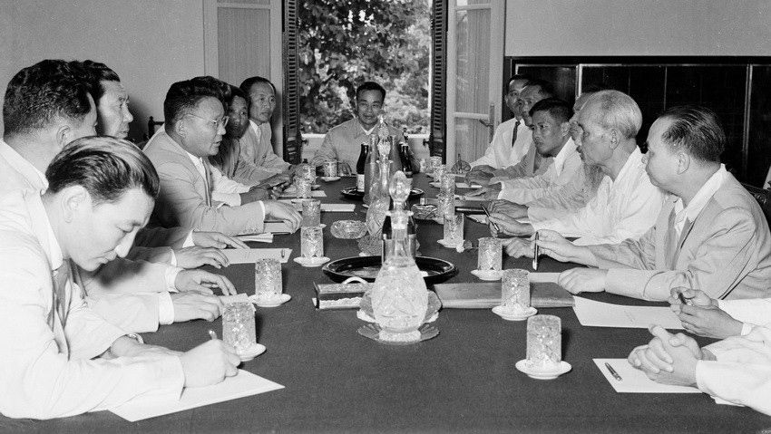 Chủ tịch Hồ Chí Minh hội đàm với Bí thư thứ nhất Đảng Nhân dân Cách mạng, Chủ tịch Hội đồng Bộ trưởng Nước Cộng hòa Nhân dân Mông Cổ Tsedenbal sang thăm Việt Nam (năm 1959). Ảnh TTXVN