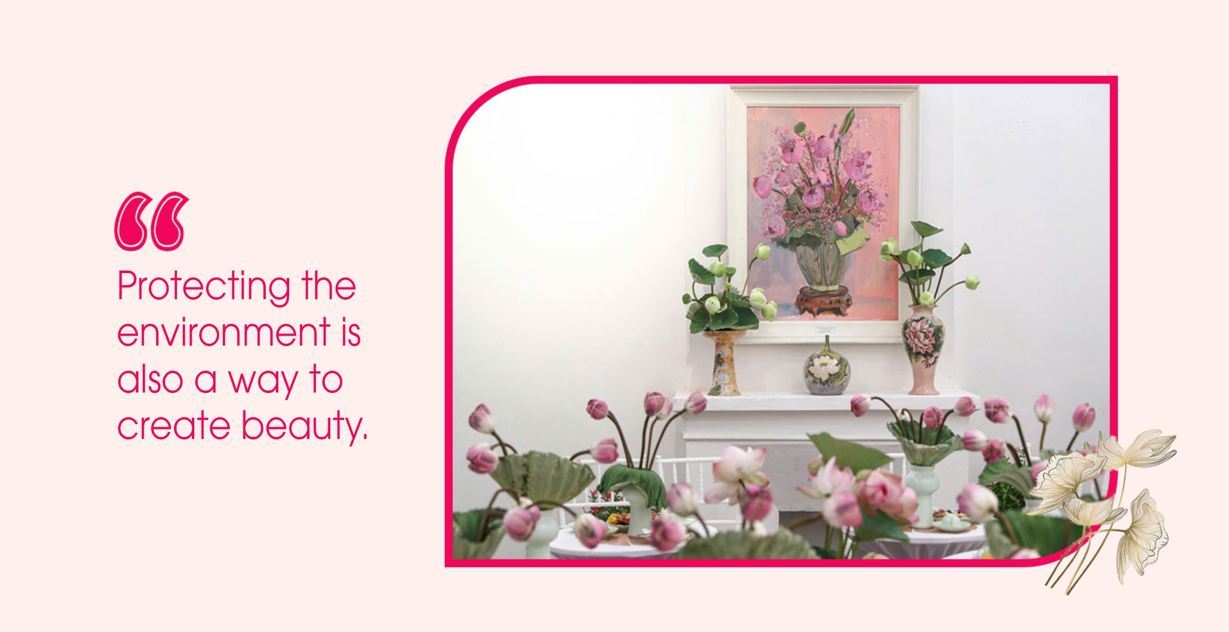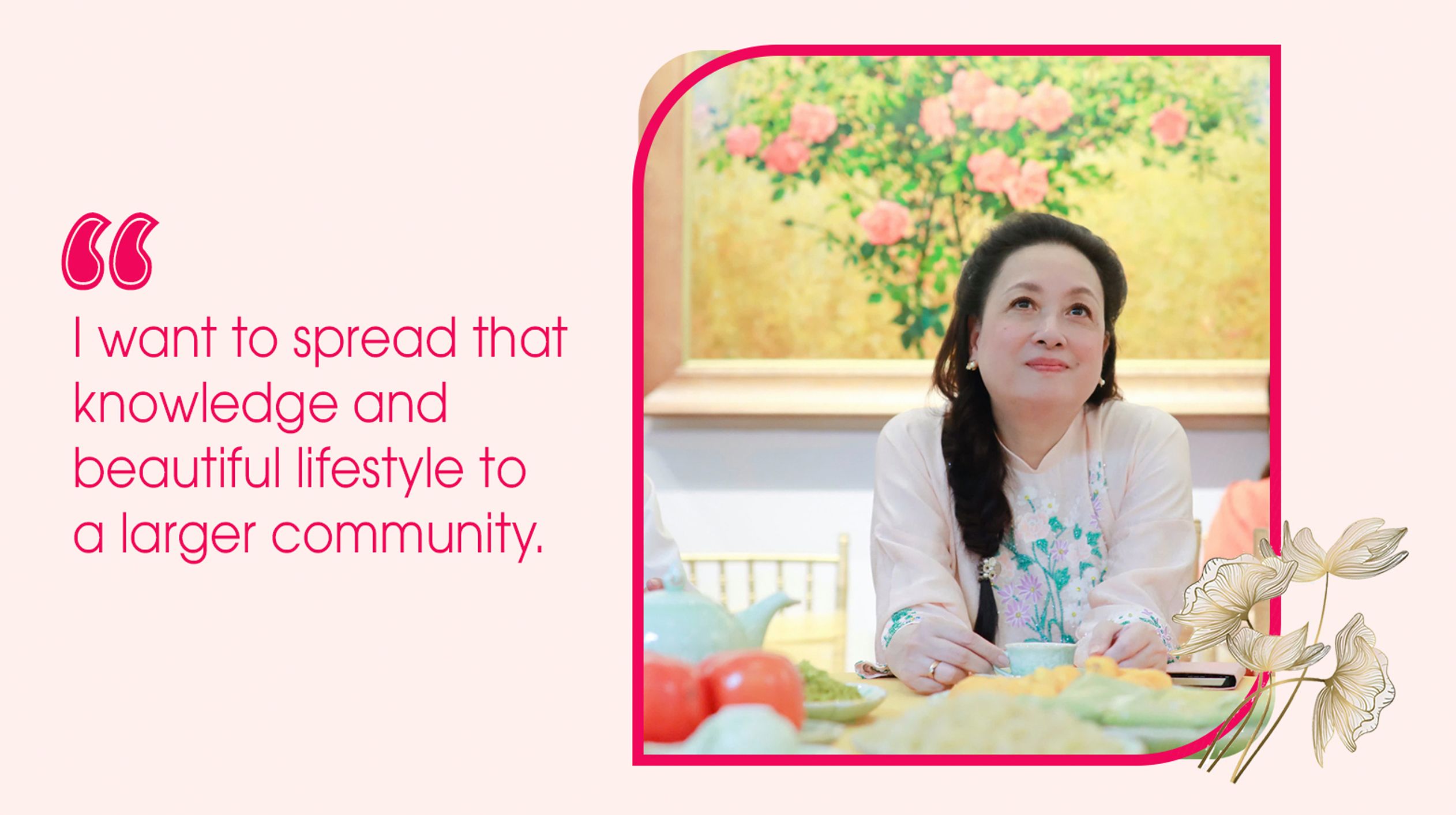 Over the years, she has organised exhibitions of her collections to share her love for beauty with the public. Through these efforts, she quietly sows the seeds of beauty within the community, fosters connections to protect cultural values, preserves nature, and spreads the message of green and sustainable living.