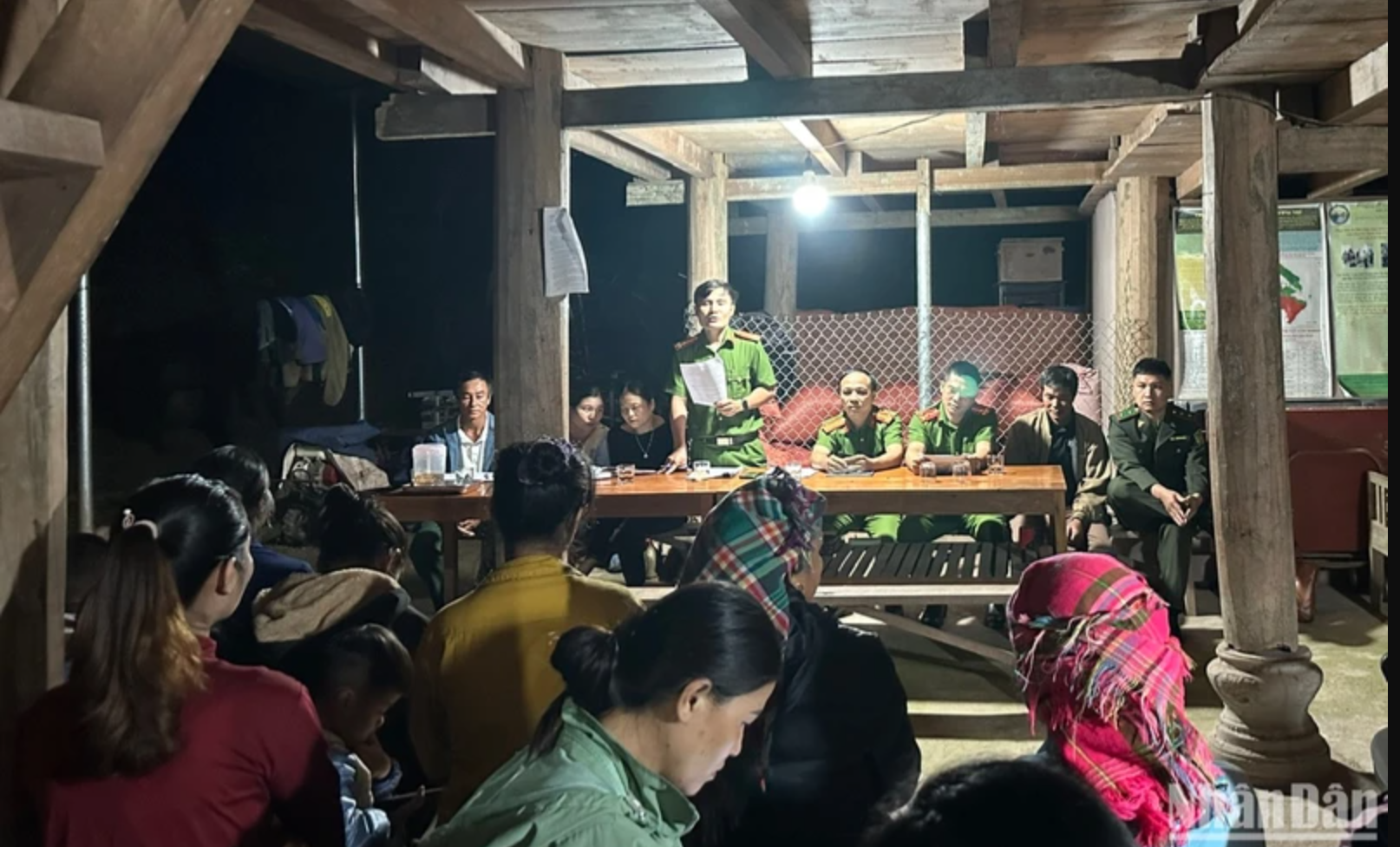 Không kể ngày hay đêm, cứ mỗi khi người dân trên địa bàn sắp xếp được thời gian là cán bộ, chiến sĩ công an huyện Mường Nhé cùng cán bộ xã về tuyên truyền, phân tích luận điệu các tà đạo để người dân hiểu. (Ảnh: LÊ LAN)