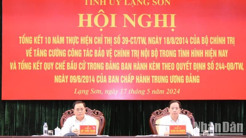 Tỉnh ủy Lạng Sơn tổ chức Hội nghị tổng kết 10 năm thực hiện Chỉ thị số 39, ngày 18/8/2014 của Bộ Chính trị về tăng cường công tác bảo vệ chính trị nội bộ trong tình hình hiện nay và tổng kết quy chế bầu cử trong Đảng ban hành kèm theo quyết định số 244, ngày 9/6/2014 của Ban Chấp hành Trung ương Đảng, ngày 17/05/2024.
