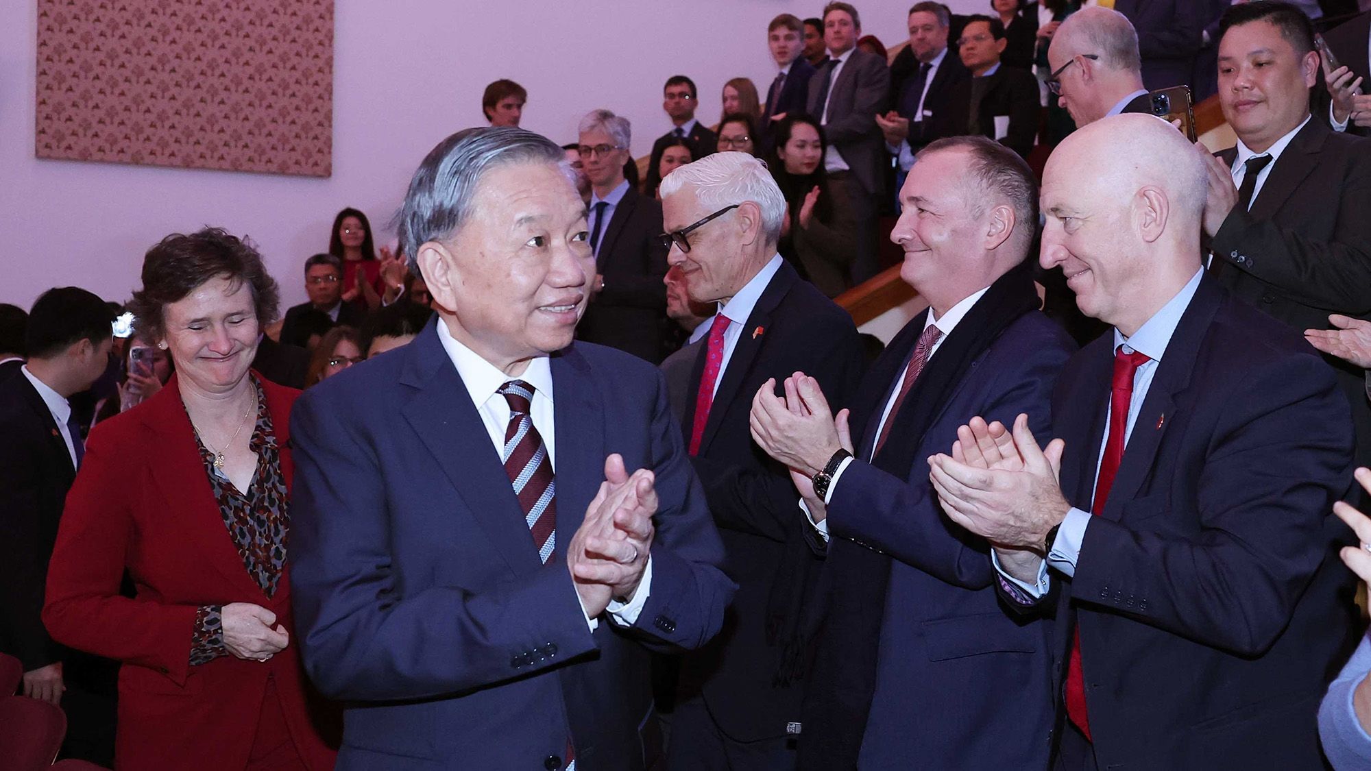 苏林总书记希望英国年轻一代、各研究机构、高等院校、创新型企业、民间社会组织以及未来政策制定者应把越南视为在正在重塑的世界秩序中共同分担责任与共享利益的真诚、可信任合作伙伴。苏林总书记表示相信,只要双方基于互相尊重、互利共赢和长远愿景,携手构建全面、务实的战略合作框架,越英关系不仅将在新时代外交版图上迈上新台阶。这还成为两国,更是二十一世纪和平、稳定与可持续发展的推动力、典范和共同成功的故事。