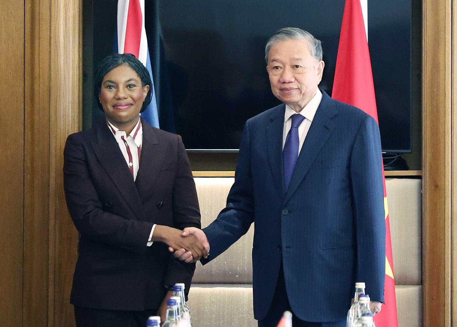 在会见英国保守党主席凯米·巴德诺克时,苏林总书记感谢保守党主席及领导层对越南的友好情谊与团结支持;强调越南共产党一贯重视与包括英国保守党在内的世界各政党的友好与合作关系。苏林总书记希望保守党继续支持英国议会和政府推动并为两国合作创造有利条件;同时,双方政党应继续发挥作用,加强信息交流,举办文化与民间交流活动,增进两国人民的了解与友谊。
