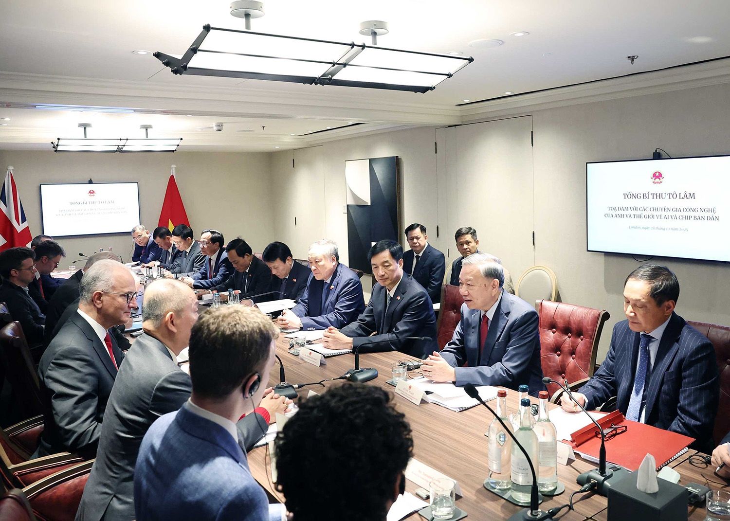 苏林总书记出席在英国举行的人工智能与半导体芯片座谈会。(图片来源:越通社)