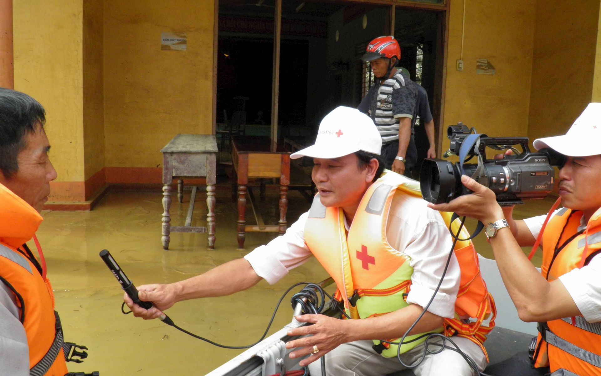 Phóng viên tác nghiệp trong lũ lụt ở Quảng Bình năm 2000.