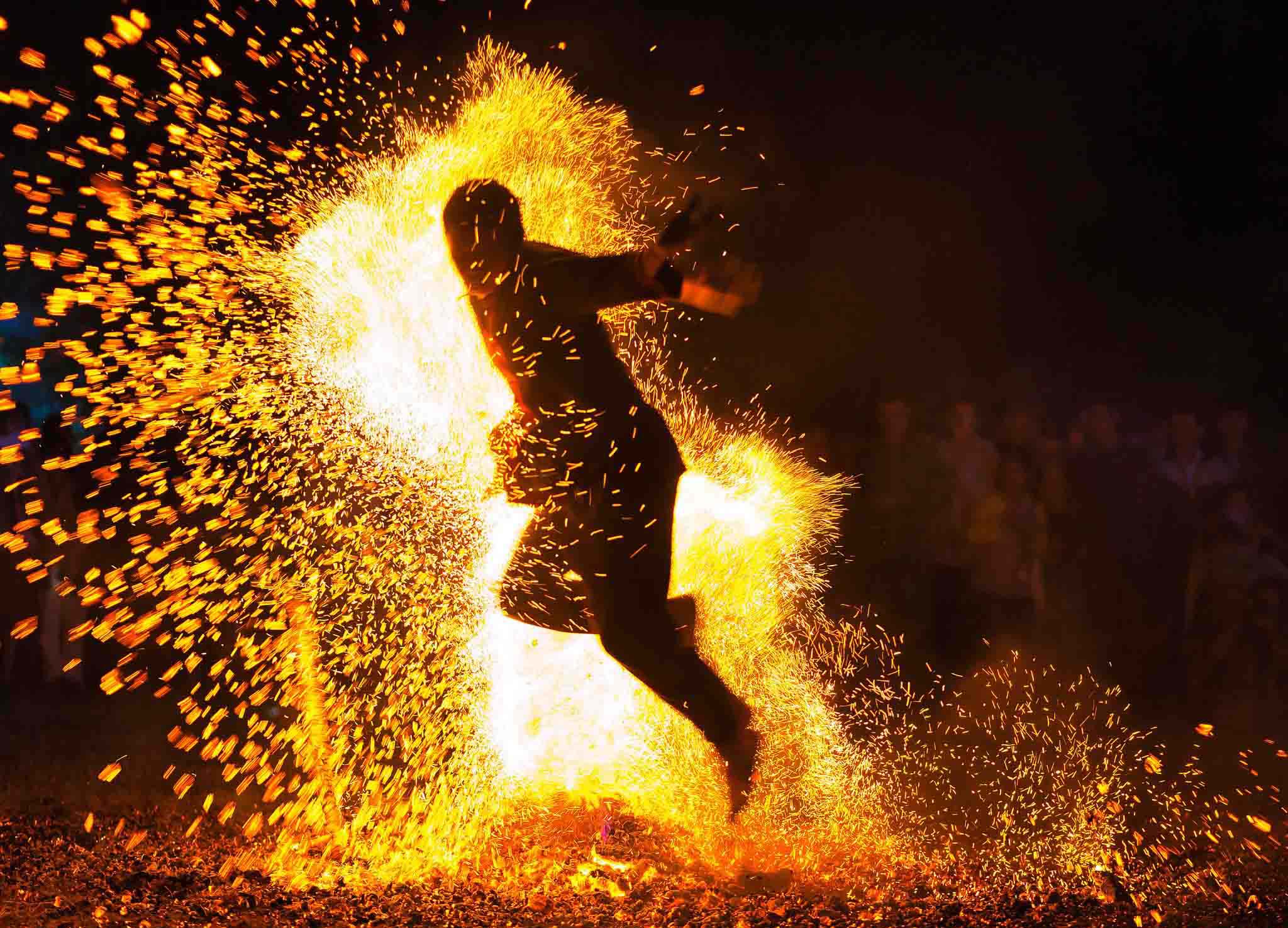 Được thần linh che chở, những chàng trai với đôi chân trần nhảy vào lửa nhưng không bị bỏng.