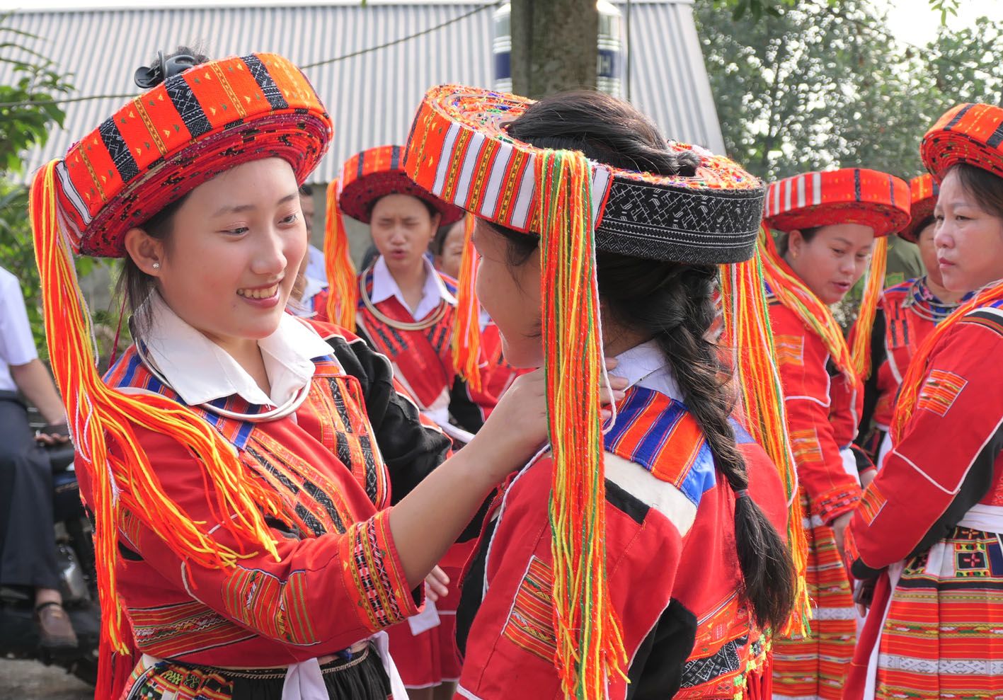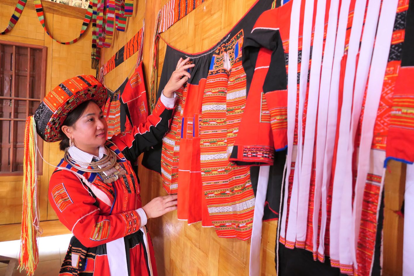Phụ nữ dân tộc Pà Thẻn thường diện trang phục truyền thống khi trong làng có lễ hội.