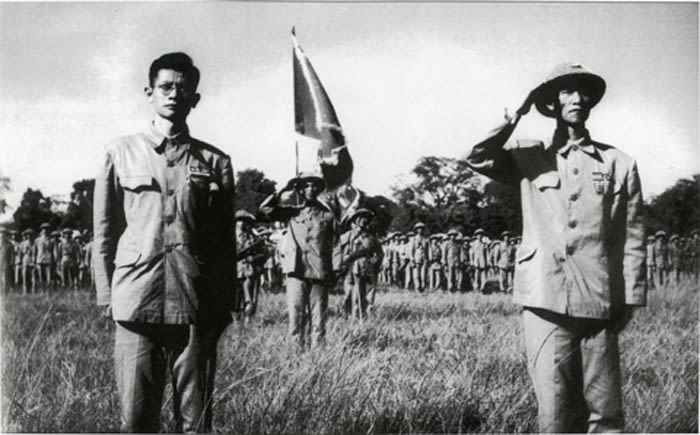 Đại tướng Võ Nguyên Giáp duyệt các đơn vị tham gia chiến dịch Điện Biên Phủ ngay tại mặt trận. Ảnh: TTXVN