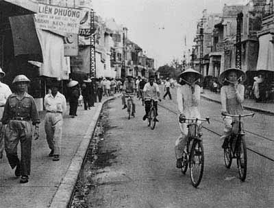 Những người lính Pháp cuối cùng trên đường phố Hàng Bông, Hà Nội. (Ảnh: Sách ảnh "Hà Nội ngày tiếp quản" của UBND thành phố Hà Nội)