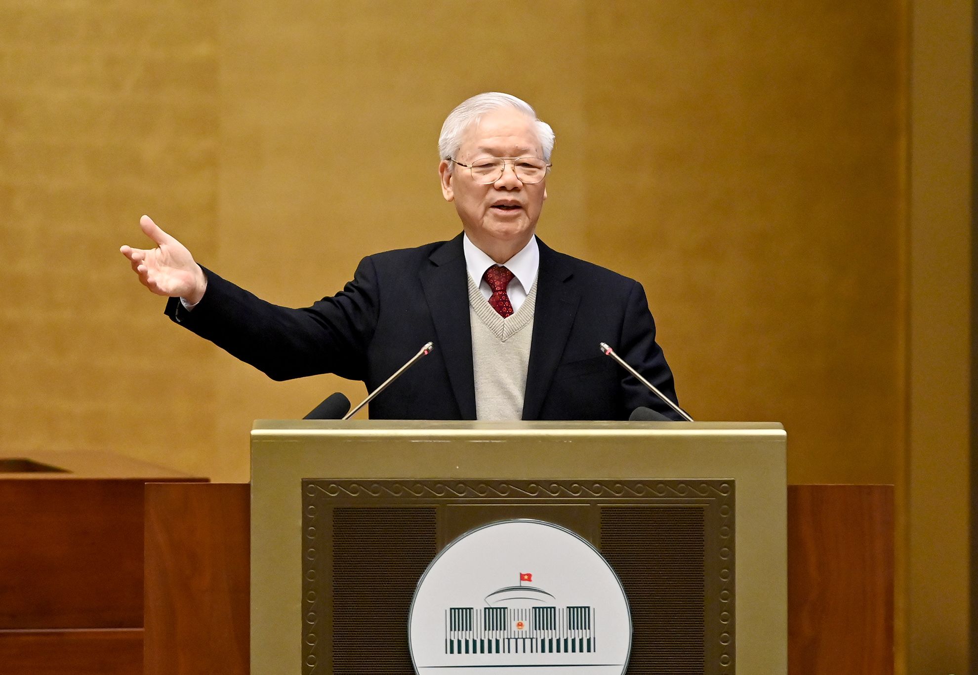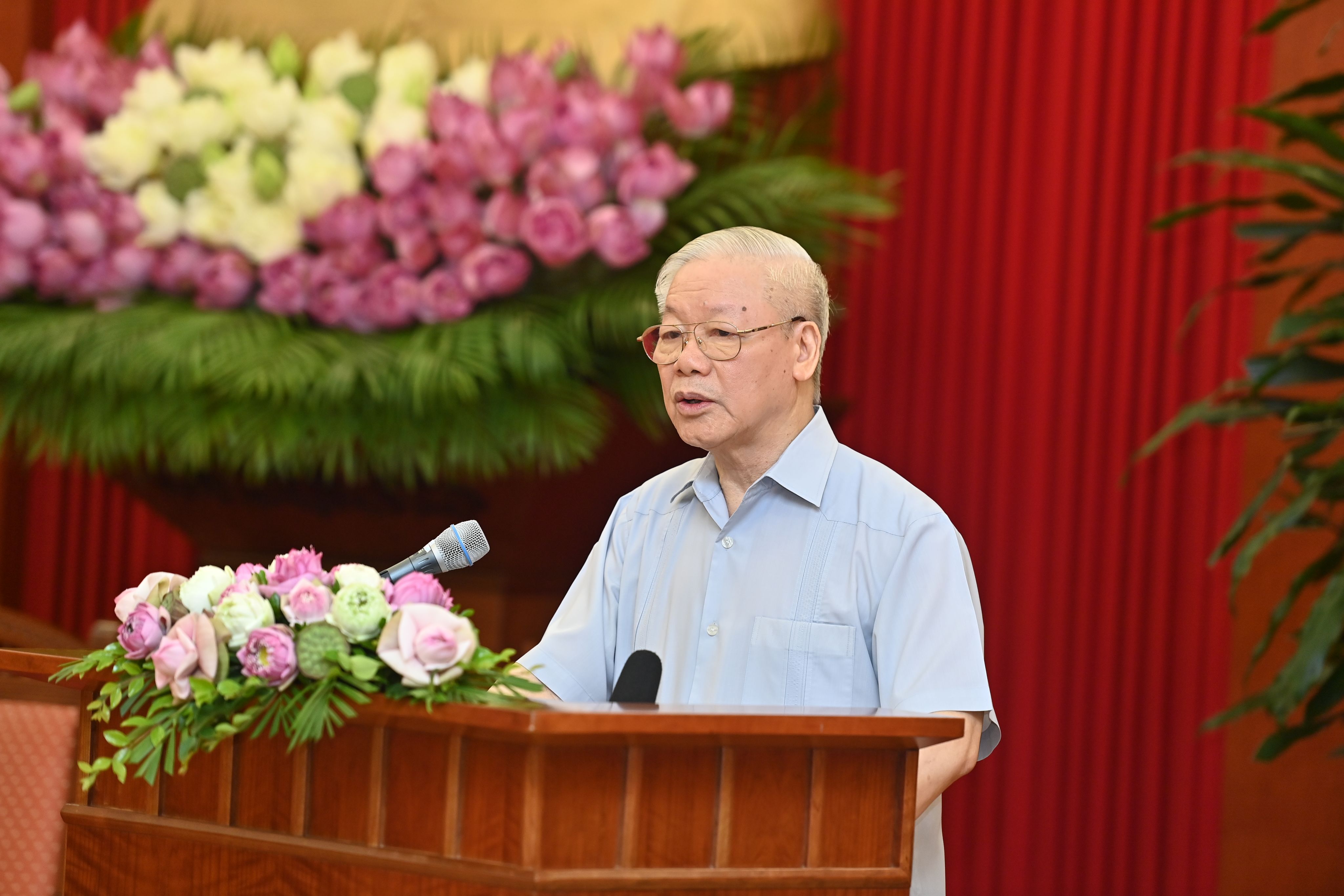 Tổng Bí thư Nguyễn Phú Trọng phát biểu chỉ đạo Hội nghị Văn hóa toàn quốc triển khai thực hiện Nghị quyết Đại hội XIII của Đảng. (Ảnh: ĐĂNG KHOA)