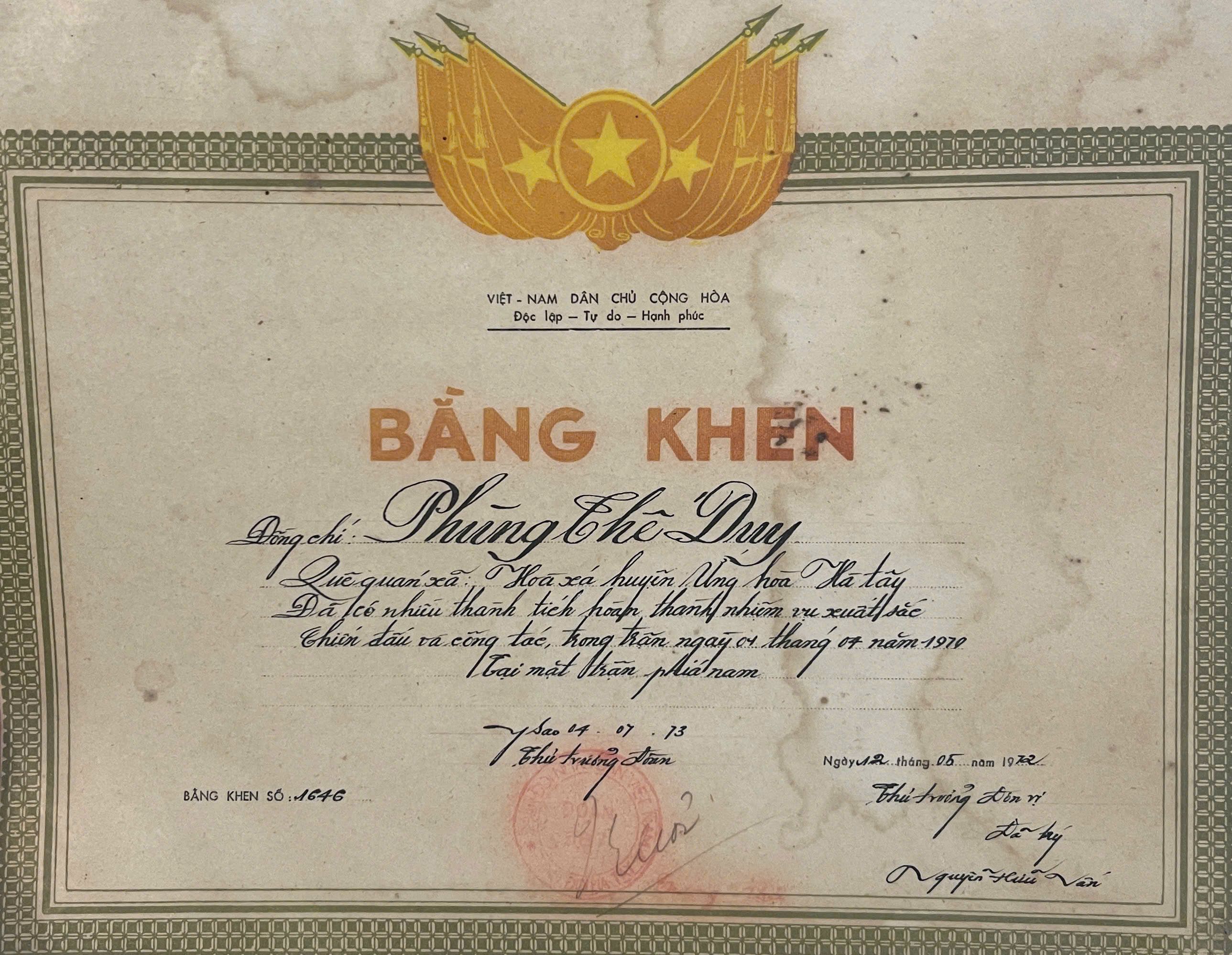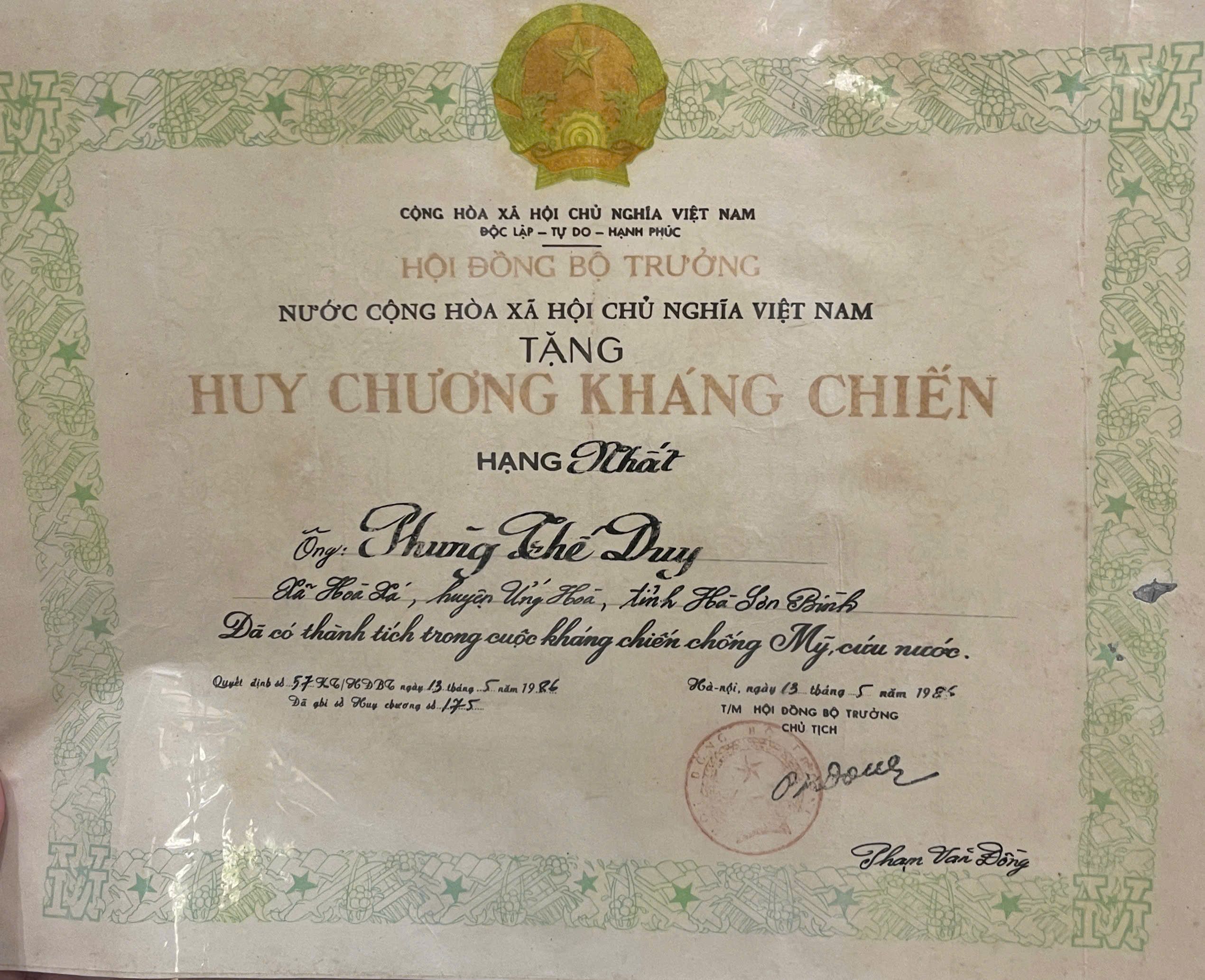 Trong căn nhà nhỏ nép mình giữa con ngõ yên ả, ông Phùng Thế Duy cẩn thận sắp xếp những chiếc bằng khen, những kỷ vật thời chiến trên chiếc bàn trà. Mỗi món đồ, mỗi tấm bằng khen là một lát cắt ký ức mà ông gìn giữ bấy lâu.