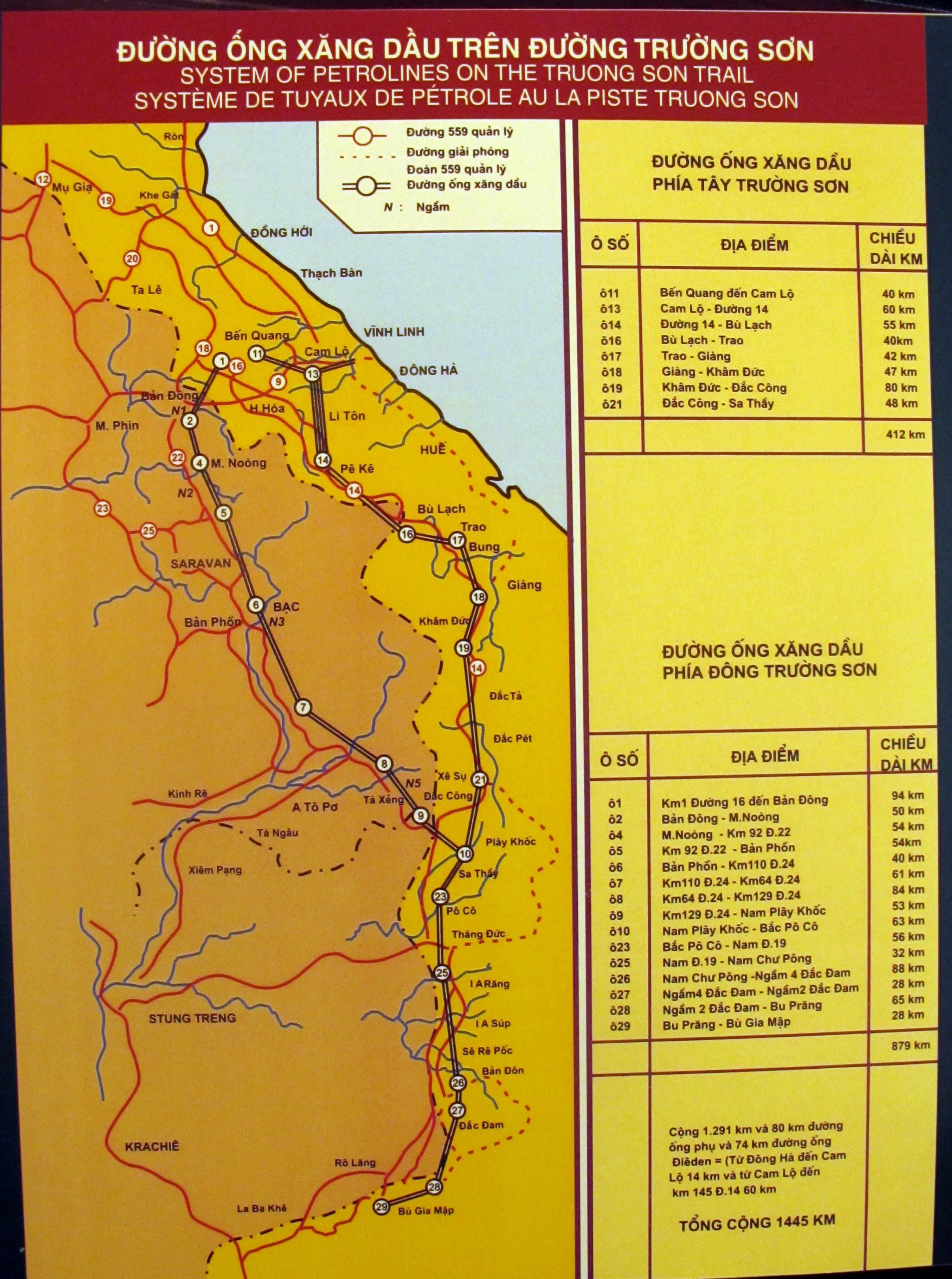 Bản đồ Hệ thống đường ống đầu năm 1970 trên đường Trường Sơn. Ảnh: HTTL