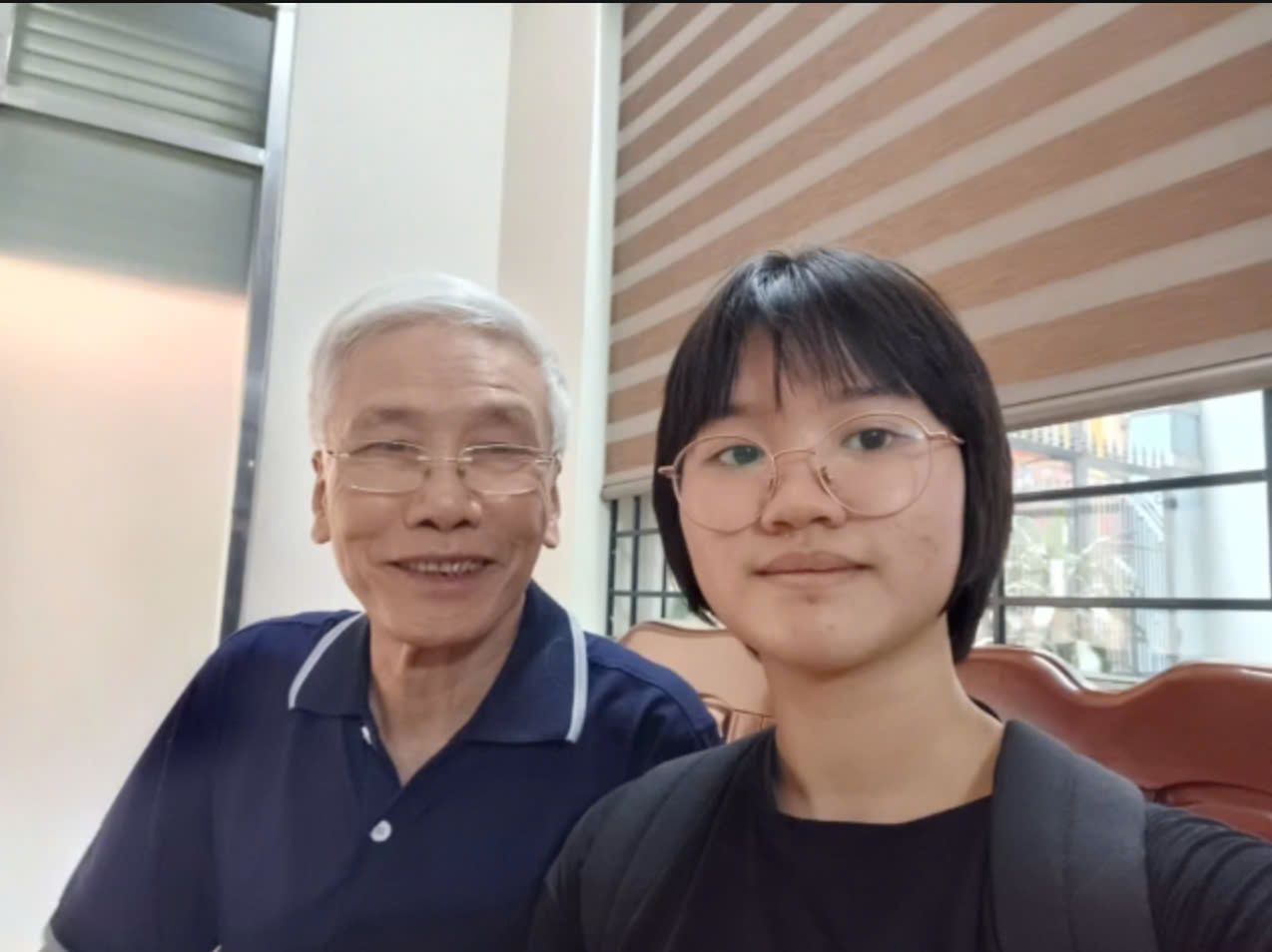 Ông Đặng Xuân Học và cháu trai - Nguyễn Đặng Khánh Lâm, sinh năm 2009, học sinh lớp 10 trường phổ thông liên cấp Alfred Nobel