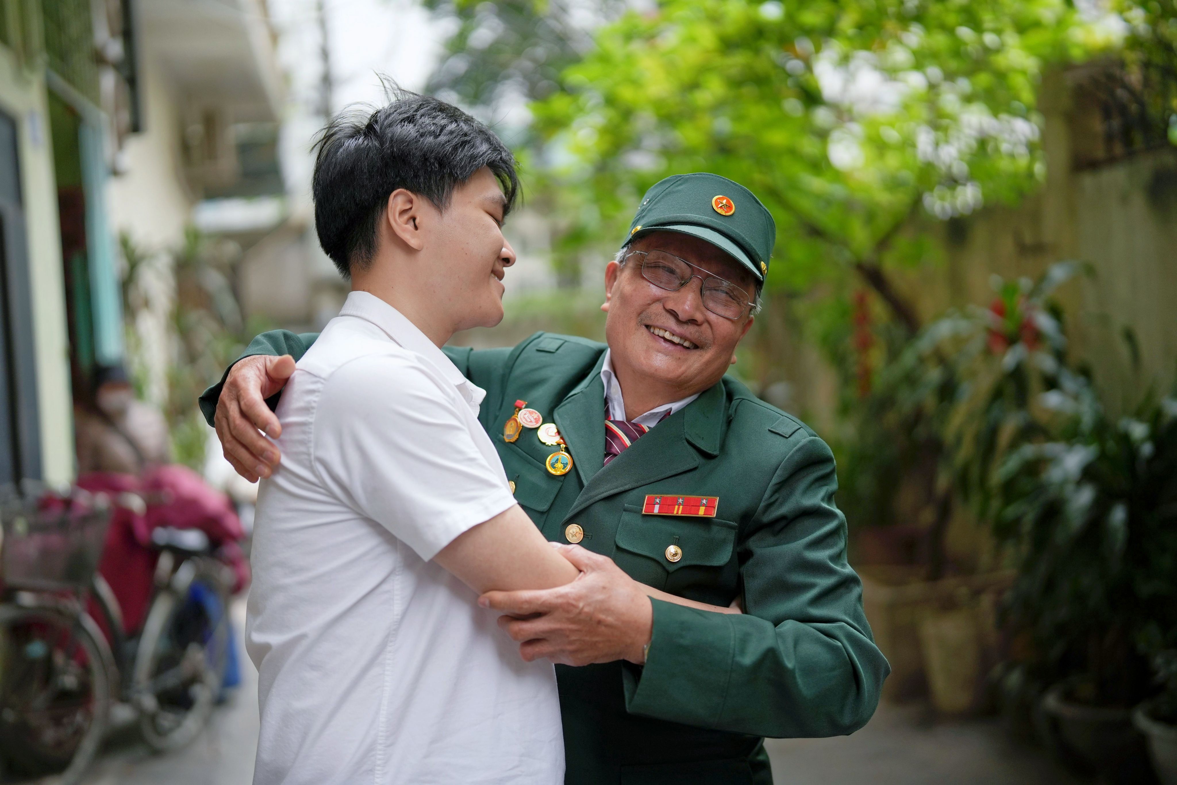 Người ông từng xông pha Trường Sơn năm nào bồi hồi nhìn đứa cháu trai – giờ đã là một thiếu niên – như nhìn vào một tấm gương phản chiếu thời gian.