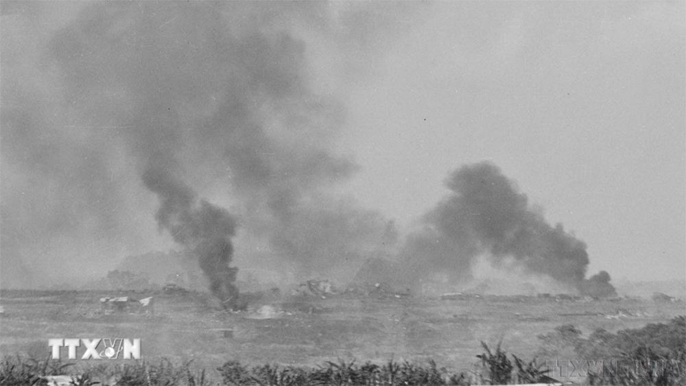 Đúng 6 giờ 30 phút ngày 10/3/1975, các cụm pháo chiến dịch của ta bắt đầu trút bão lửa xuống các mục tiêu trong thị xã Buôn Ma Thuột, làm tê liệt địch. Trong ảnh: Quân Giải phóng tiến vào chi khu Đức Lập, ngày 10/3/1975. (Ảnh: TTXVN)