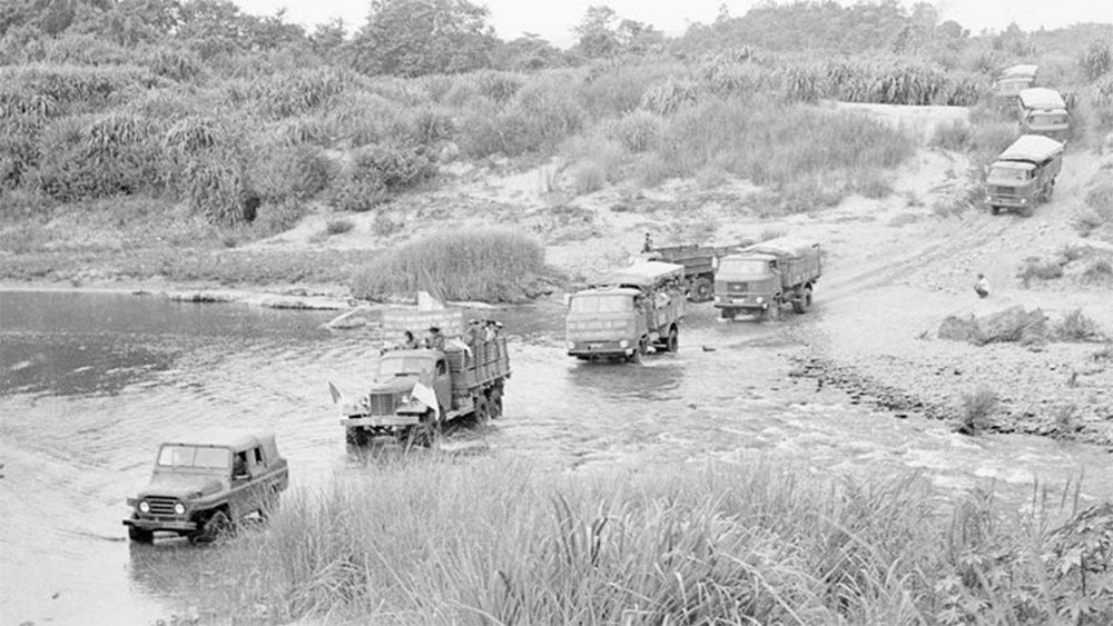 Bằng mọi phương tiện thô sơ và cơ giới, các chiến sĩ vận tải Tây Nguyên vận chuyển hàng nghìn tấn hàng hóa phục vụ chiến dịch. (Ảnh: TTXVN)