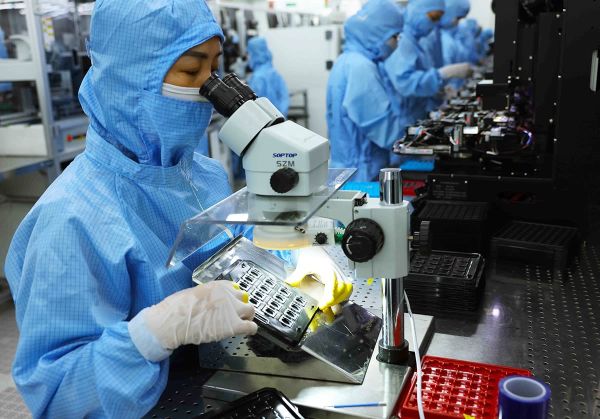 Dây chuyền sản xuất modul camera và linh kiện điện tử xuất khẩu tại nhà máy của Công ty TNHH MCNEX VINA (100% vốn đầu tư của Hàn Quốc), trong Khu công nghiệp Phúc Sơn, tỉnh Ninh Bình_Ảnh: TTXVN