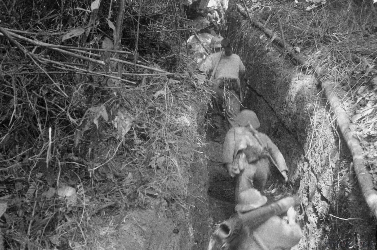 Sau khi pháo binh ngừng bắn, các chiến sĩ xung kích của ta đã lợi dụng địa hình tiến sát vào các vị trí của địch trên đồi Him Lam, và tiêu diệt các vị trí của địch ở đây ngay trong ngày 13/3/1954, ngày mở đầu chiến dịch. (Ảnh: TTXVN)
