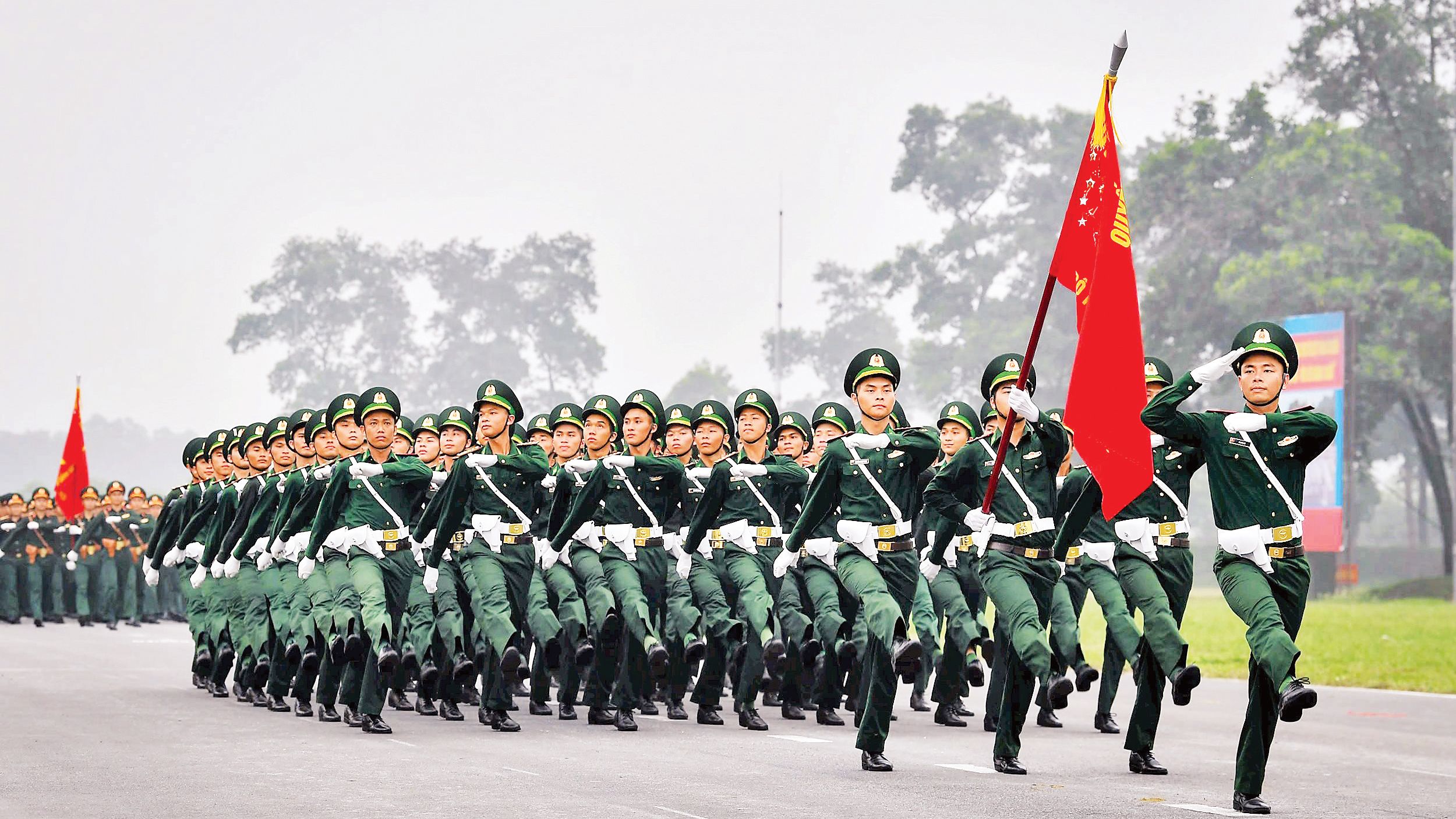 Khối nam sĩ quan biên phòng tham gia luyện tập đội hình diễu hành, chuẩn bị cho Lễ kỷ niệm 80 năm Quốc khánh 2/9. Ảnh: Thành Đạt