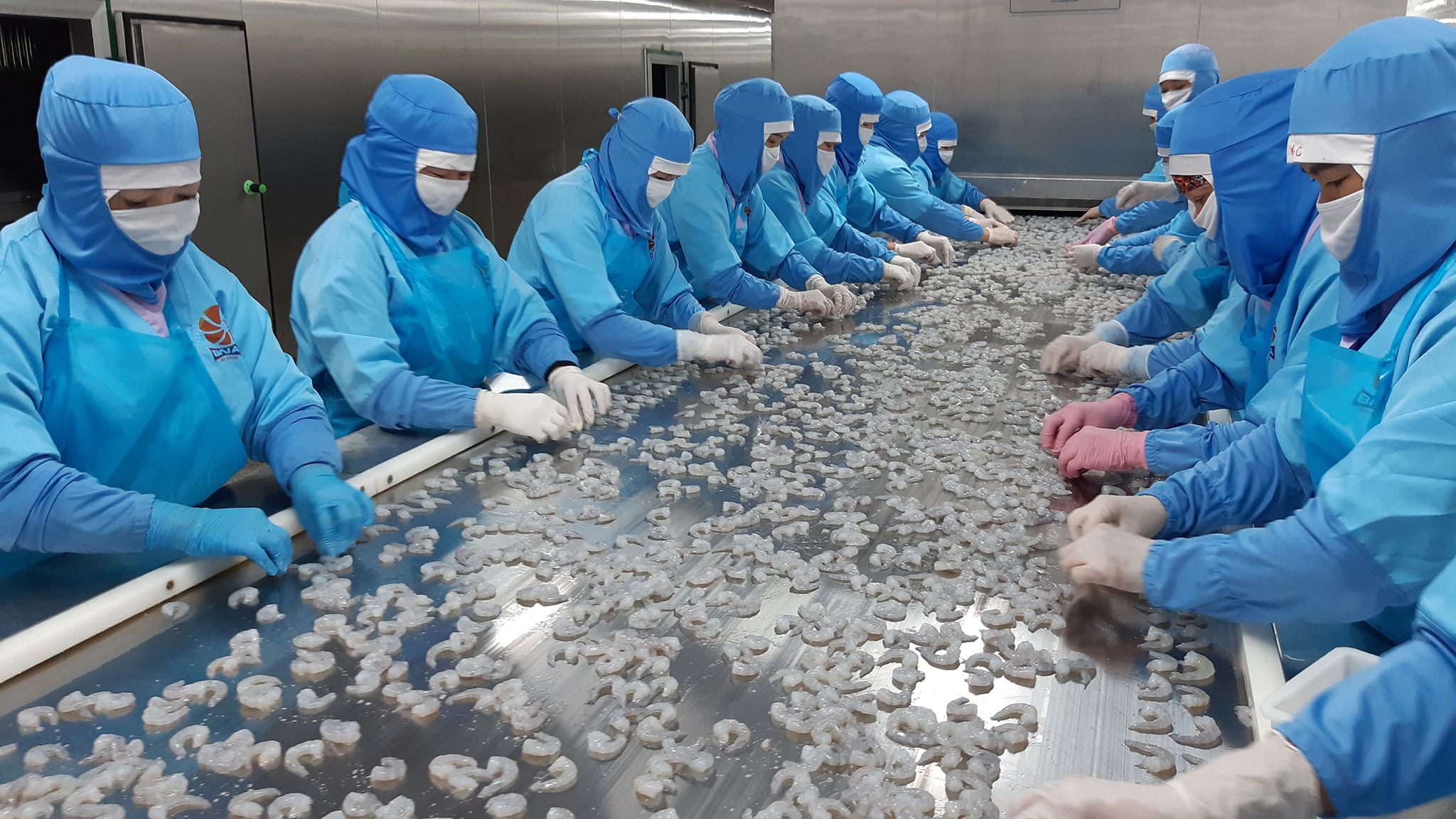 Dây chuyền chế biến thịt ếch xuất khẩu sang Liên minh châu Âu (EU) tại Công ty TNHH Tân Thành Lợi, tỉnh Long An. Ảnh: TTXVN