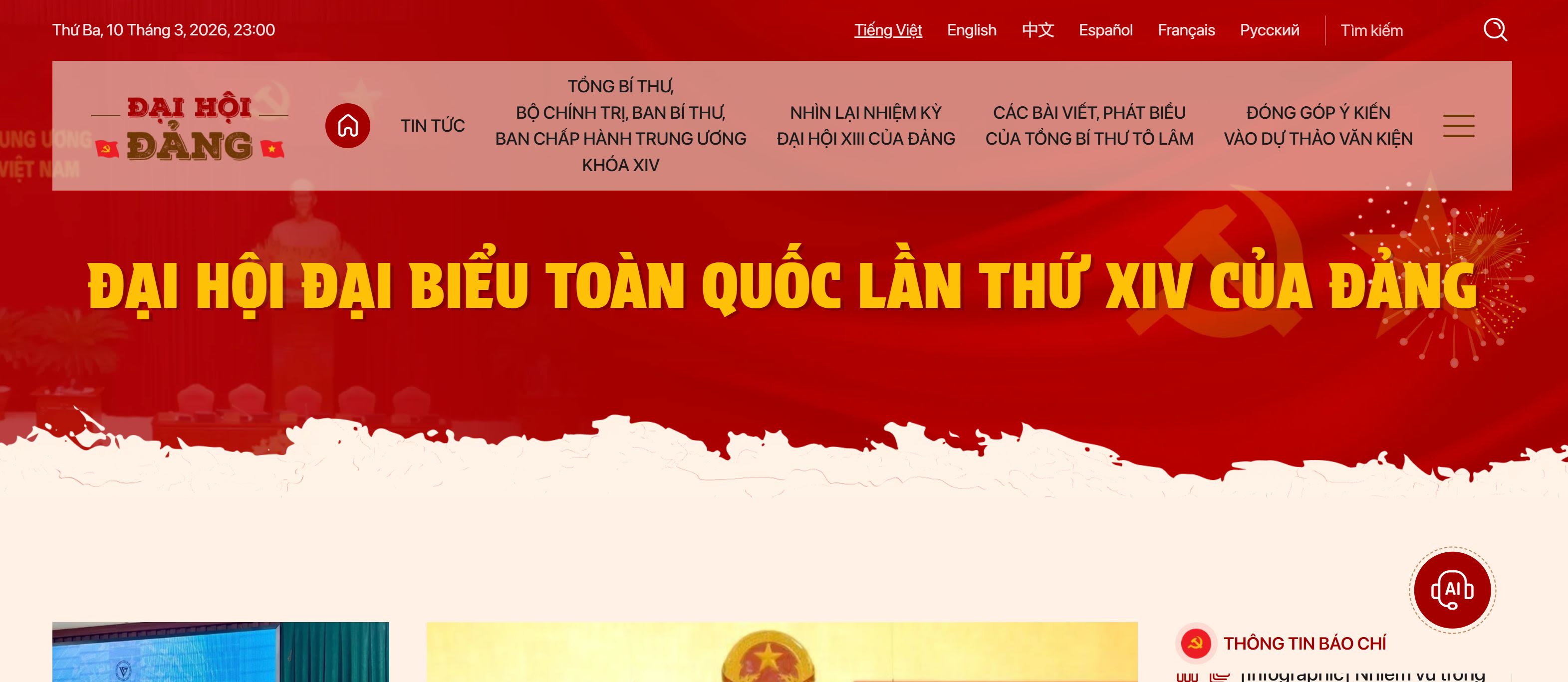 The interface of the 14th National Party Congress special page on Nhan Dan Online.