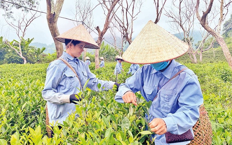 Nông dân xã Xuân Lao, huyện Mường Ảng thu hái chè. Ảnh: LÊ LAN
